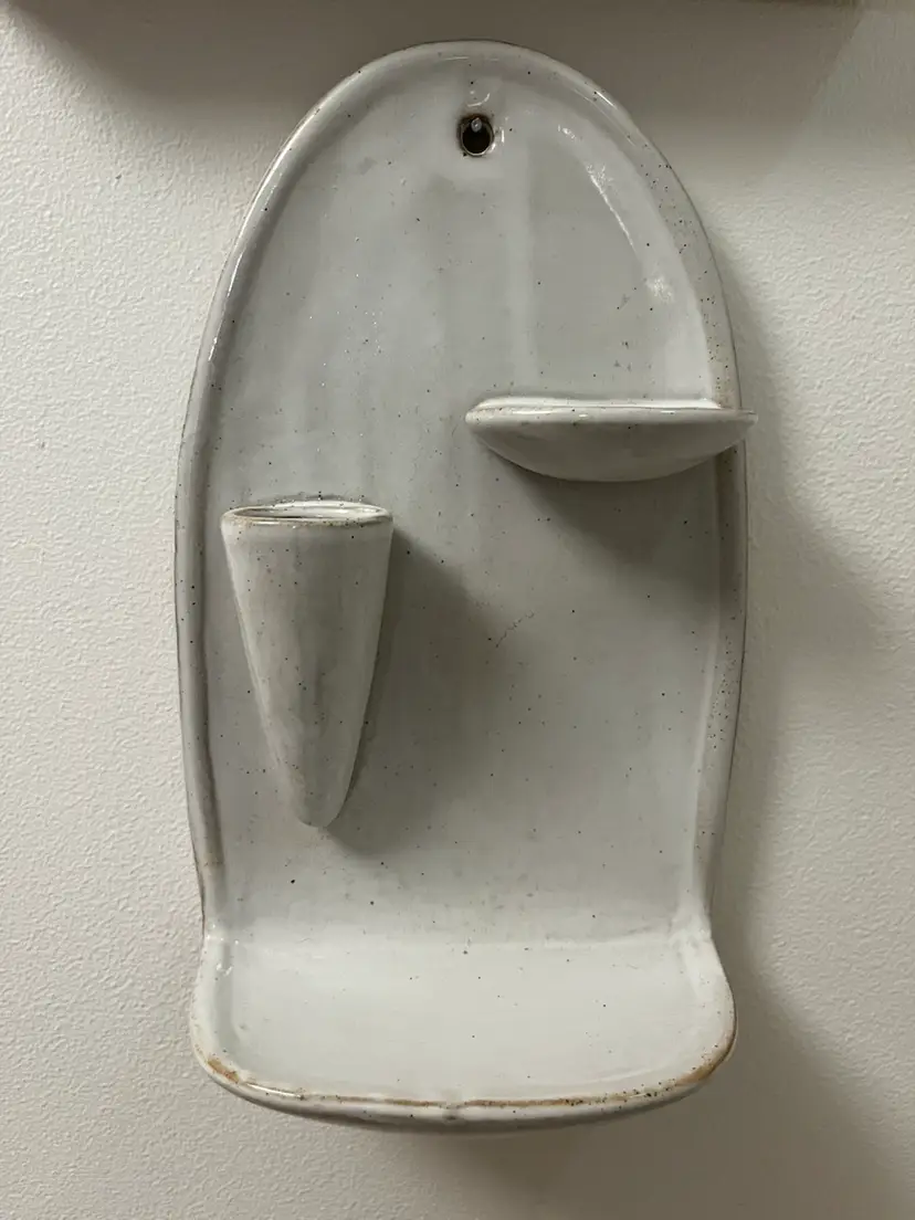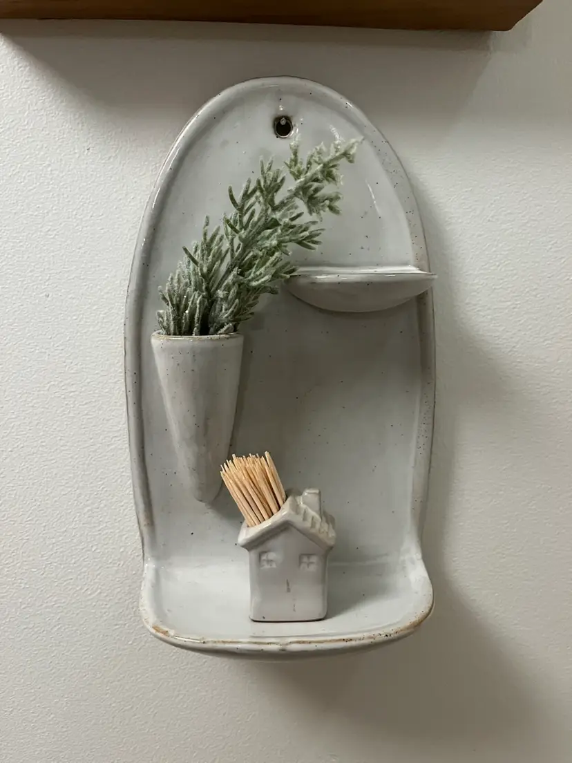 Arched stoneware wall vase / shelf Great for decorative soaps and floral stems for a bathroom or toothpicks as shown for your kitchen.