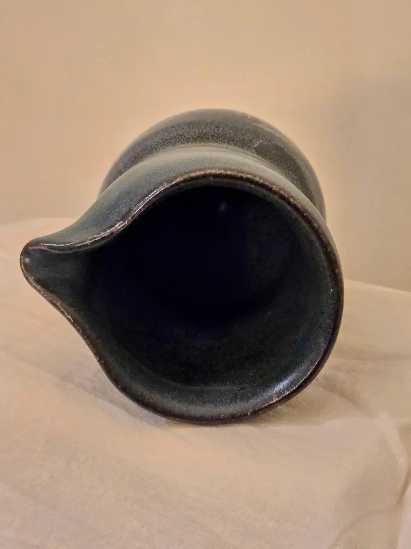 Small Pitcher Creamer/Syrup Caraffe is a 4oz creamer that is handmade with care instructions to hand wash only, this creamer is both functional and stylish, showcasing the art pottery production technique of the maker. This multicolored piece is marked with the initials SH and weighs 6.4 oz, making it a charming addition to your pottery collection.