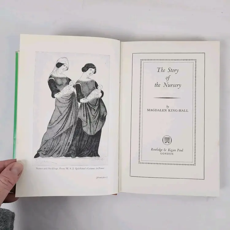 Book Title: The Story of the Nursery Narrative Type: Nonfiction Publisher: Routledge Original Language: English Vintage: Yes Publication Year: 1958 Type: Novel Format: Hardcover Language: English Author: Magdalen King-Hall Features: Dust Jacket, Illustrated Genre: Historical, History Topic: Cultural History, Family History, Family Life, Parent-Child Relationship Country/Region of Manufacture: United Kingdom