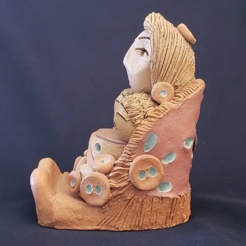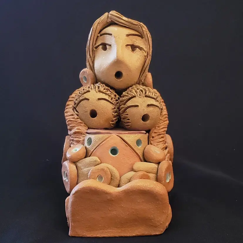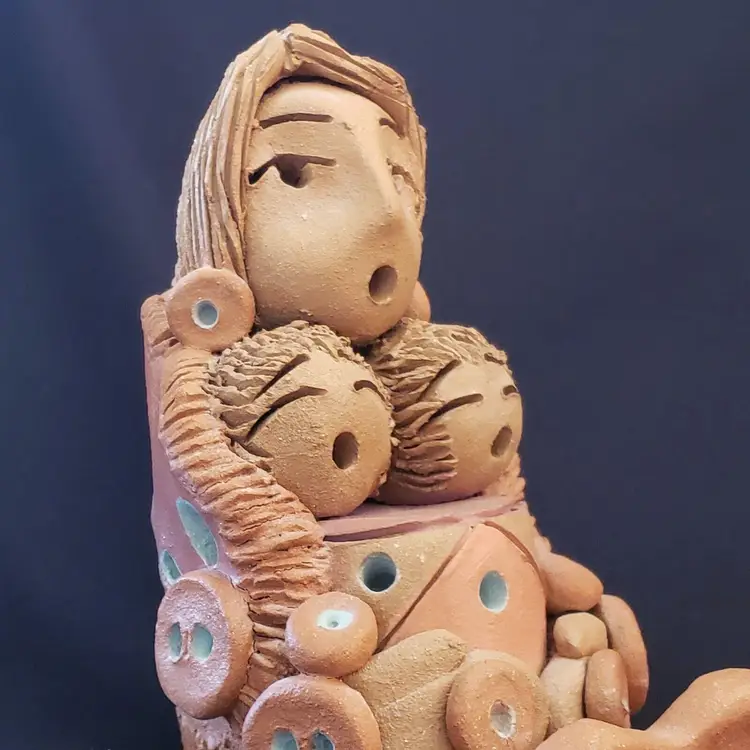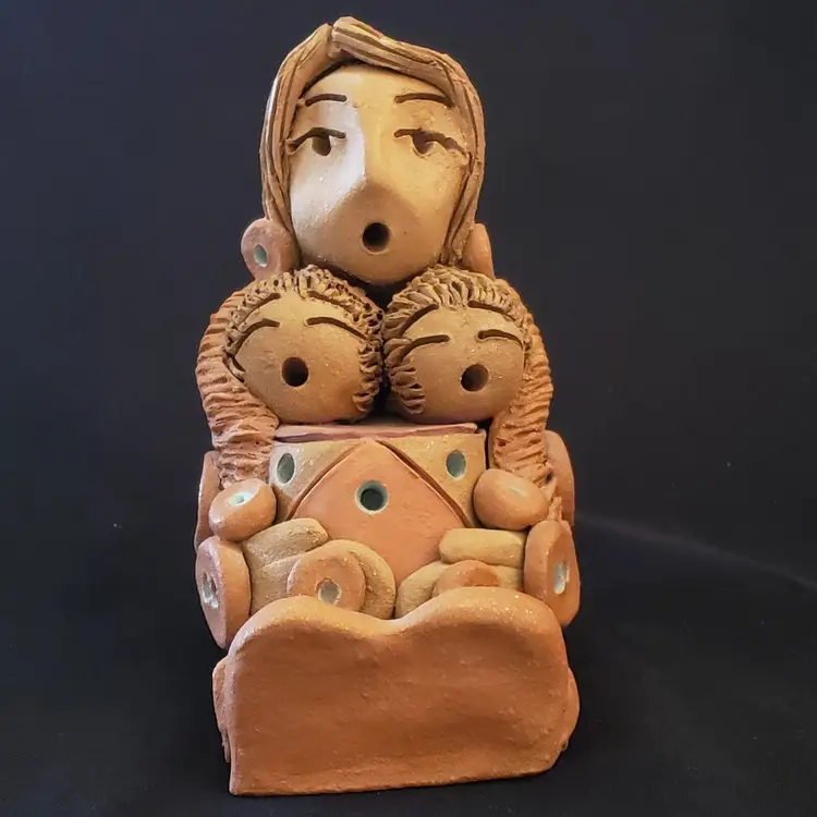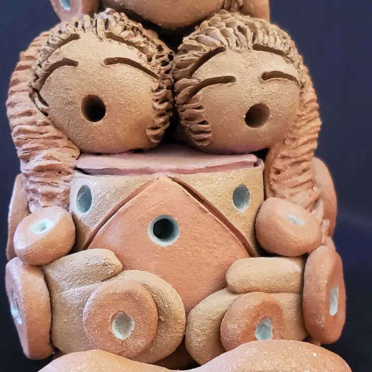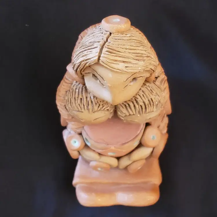 Signed Navajo Artist Pottery Storyteller Cheyenne Jim by Diane Lynn Mother with 2 Babies. Approximately 6 1/4" tall. Also has small metal medallion on back. Used condition though I do not see any issues with this item other than being heavy. Please view all photos as they are part of the description and please ask questions prior to purchase if possible.