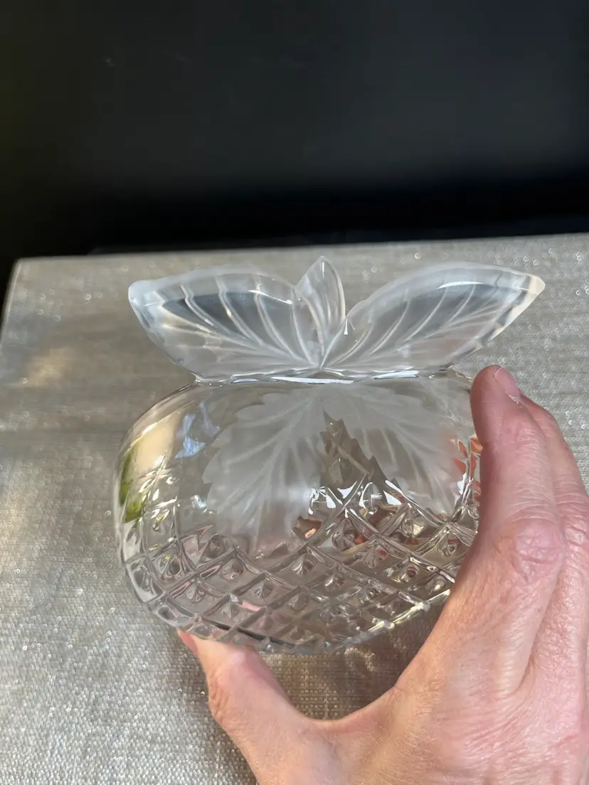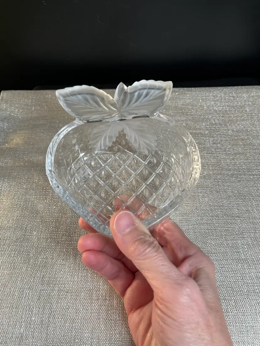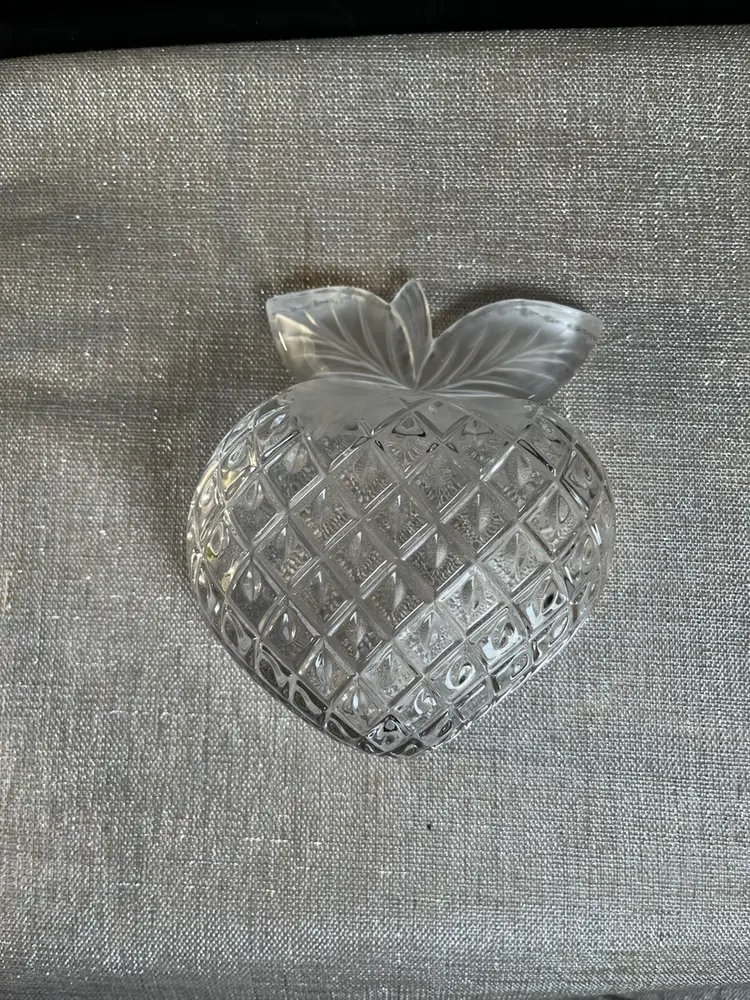 Very nicely pressed crystal w/ great detail. Even includes the pectin or seeds. There are no call outs, chips or cracks. Is in great vintage condition. It measures approx 5.5"L, 4.5"W, 2"H, 1 Lb