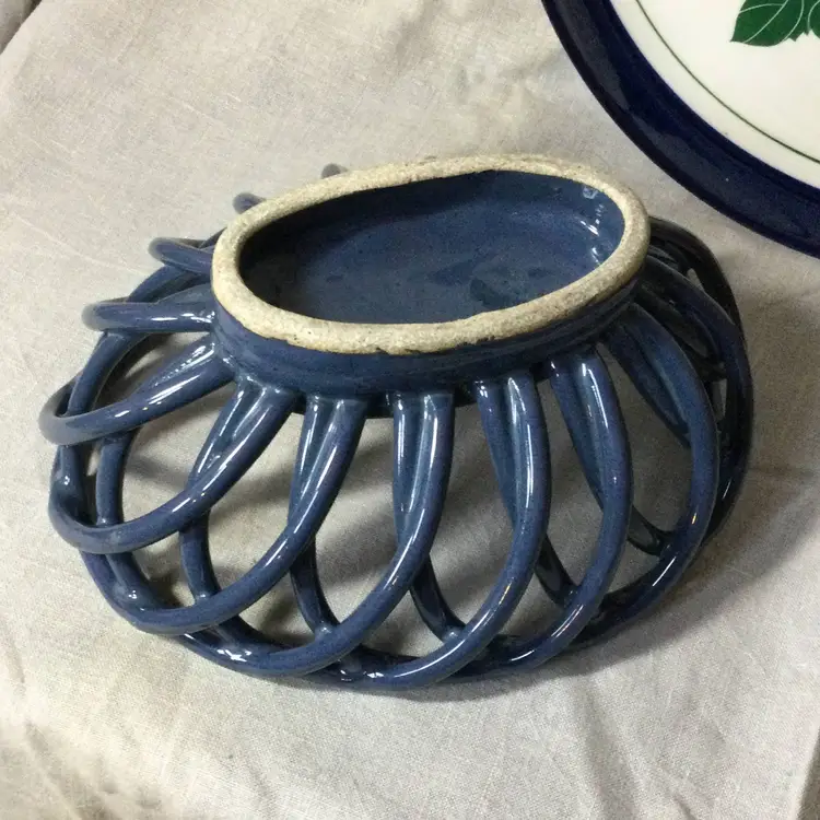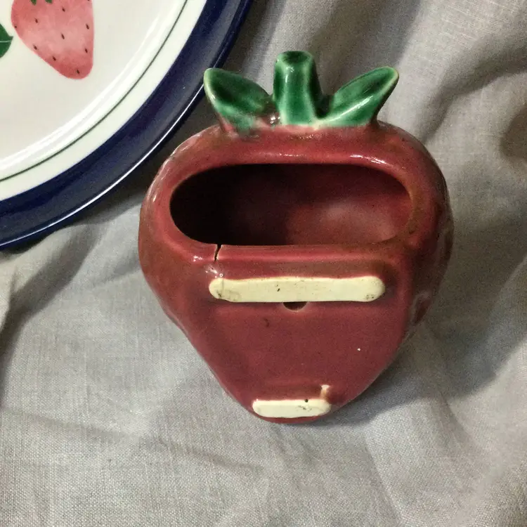 It's a beautiful Dansk ceramic serving platter with handpainted strawberries, a ceramic bread basket, and a ceramic strawberry wall pocket. Perfect for the strawberry lover in your life!