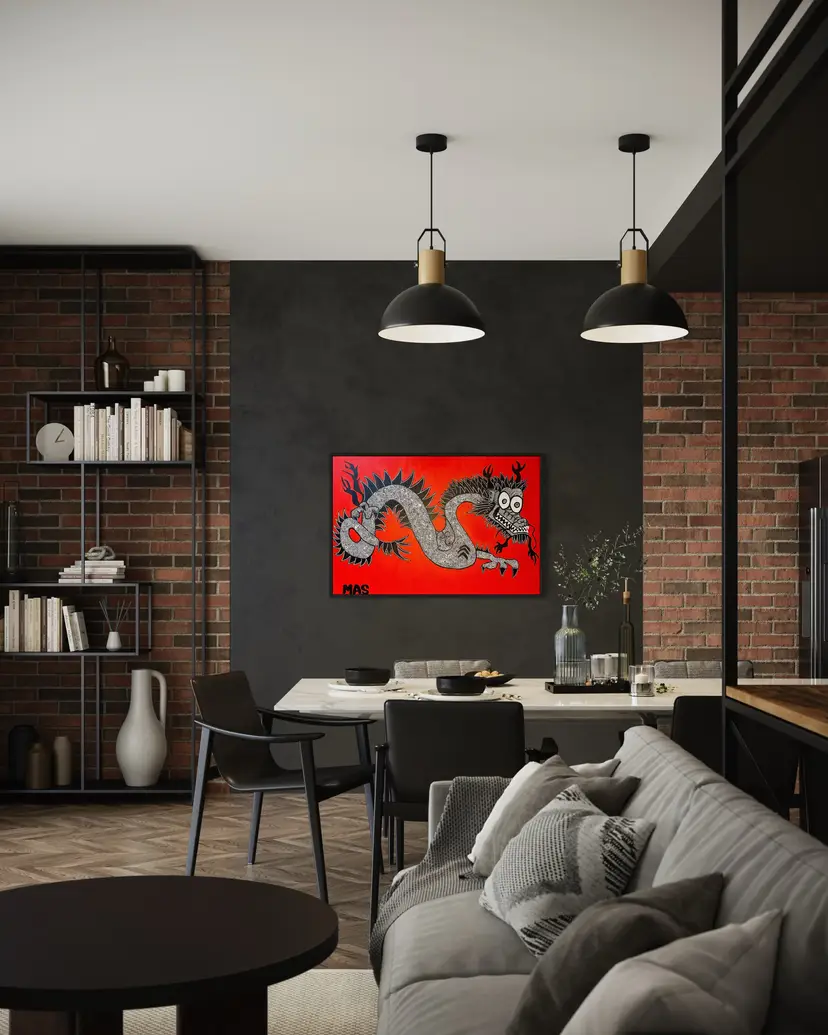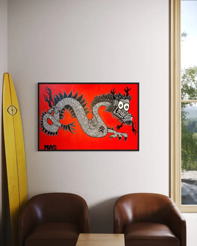 A symbol of strength, prosperity, and good fortune, the dragon has become one of my favorite mythical creatures. I chose red as the background because it represents passion and power, which complement the energy of the dragon perfectly.