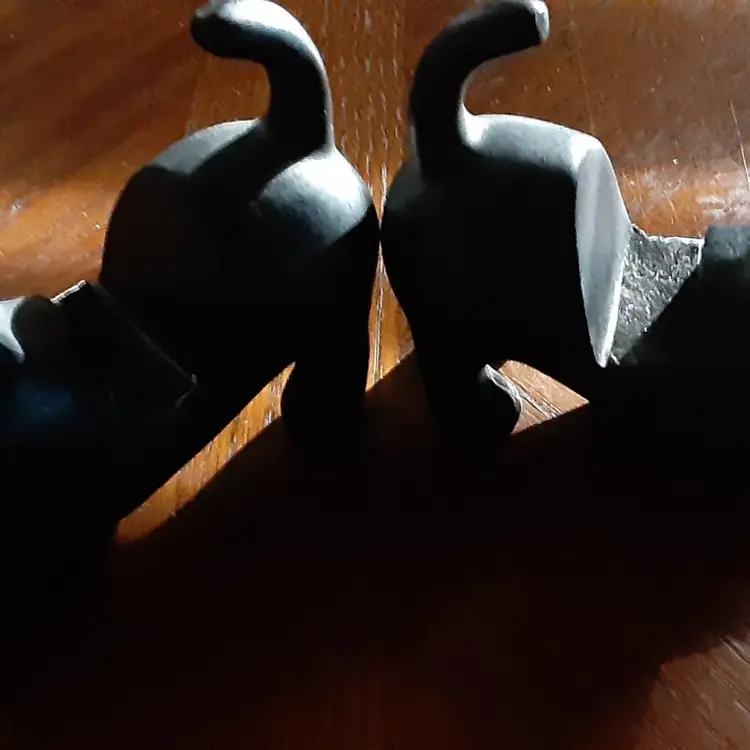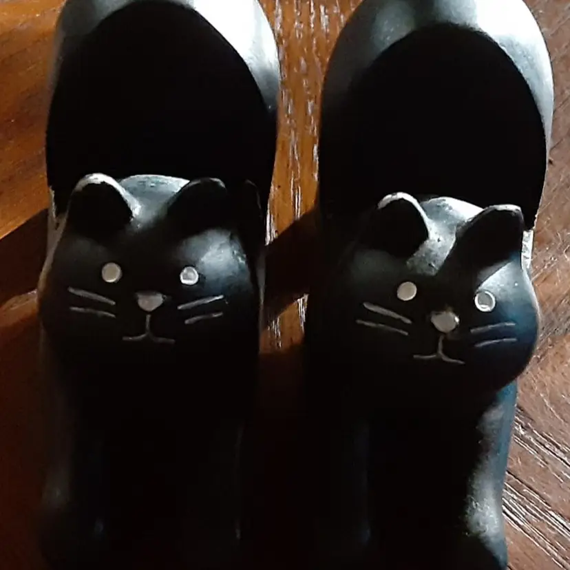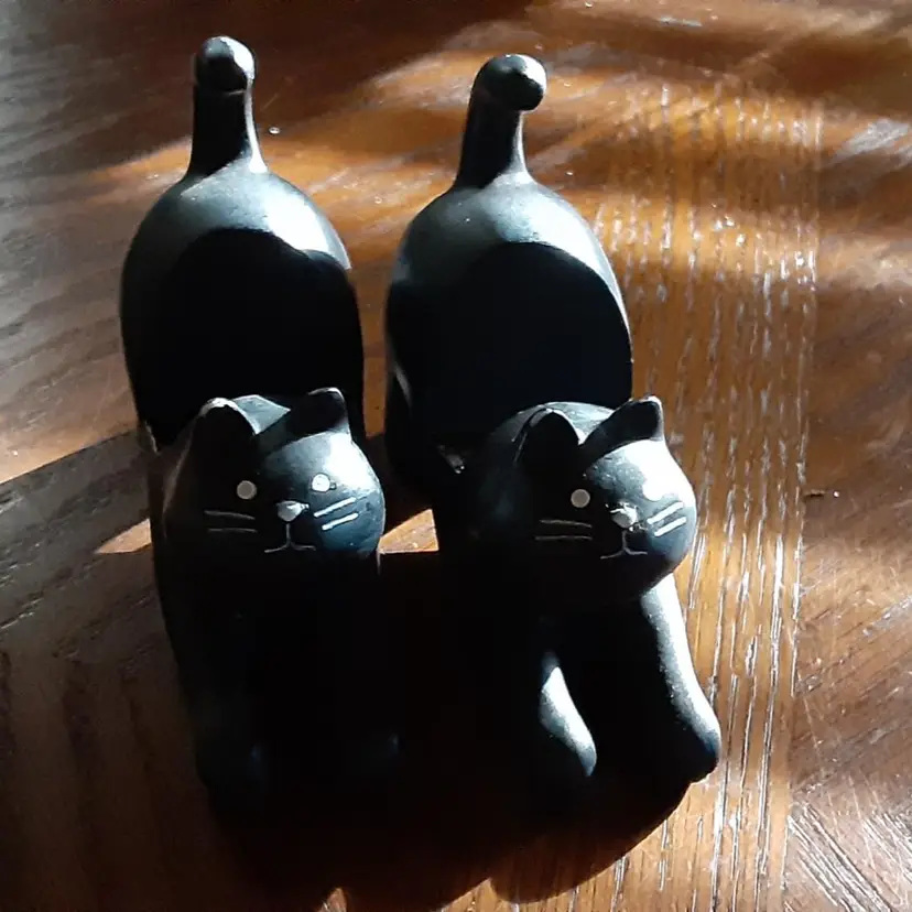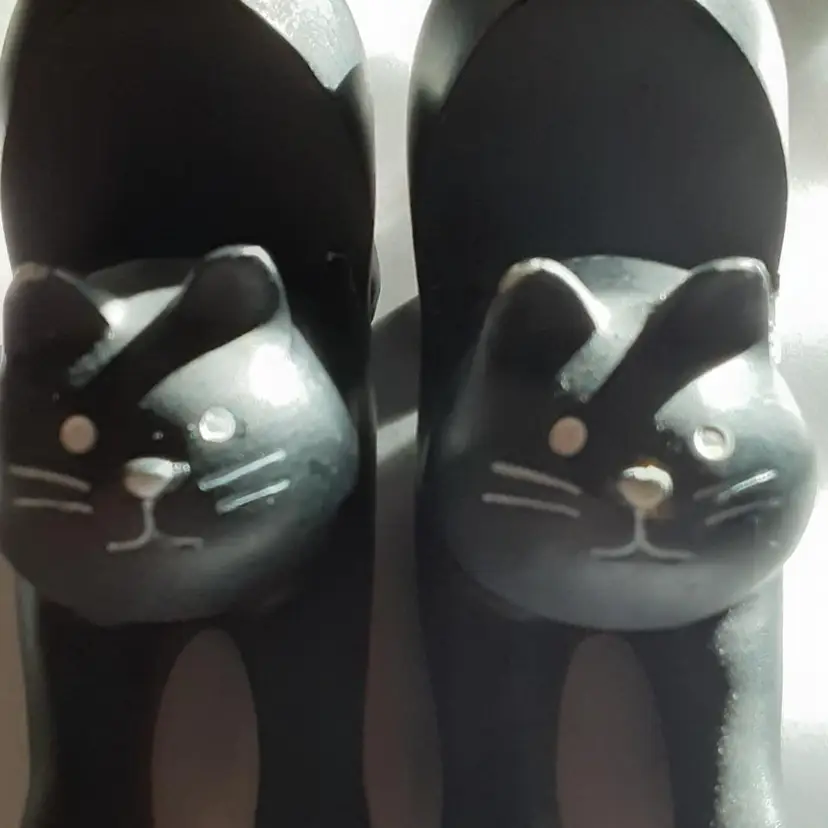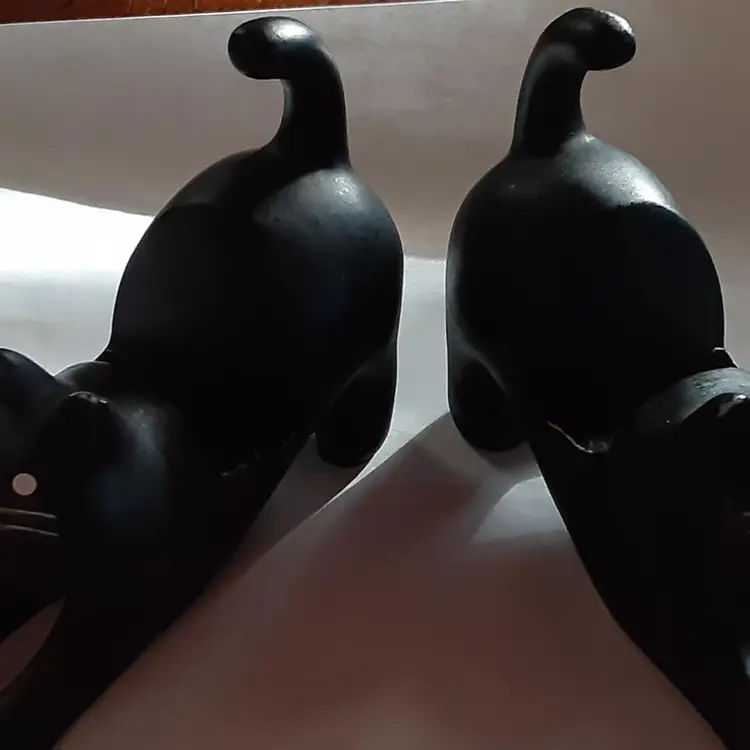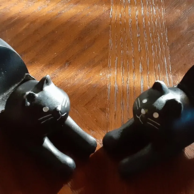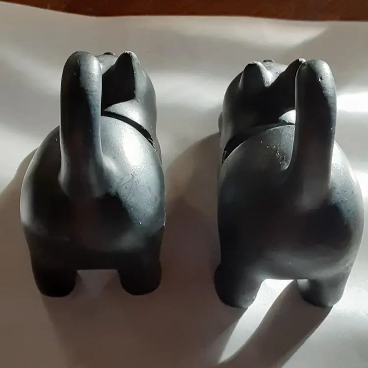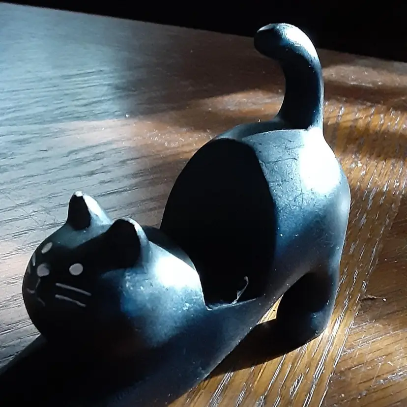 These cat cell phone holders were found at a very nice yard sale. They are 3.25" x 4.5" long. Not sure what they are made of but sound like billiard pool balls when you tap them together.