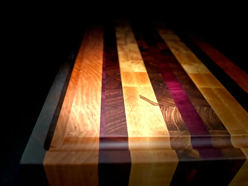 All of my custom end-grain cutting boards are thoughtfully designed and handcrafted to bring your vision to life. End-grain construction showcases the natural beauty of the wood in a way no other style can, creating distinctive grain patterns that ensure every board is truly one-of-a-kind. When paired with meticulous attention to detail and expert craftsmanship, these boards become more than kitchen tools—they are heirloom-quality pieces meant to be enjoyed and passed down for generations.