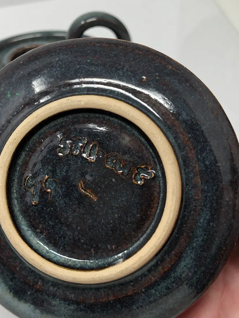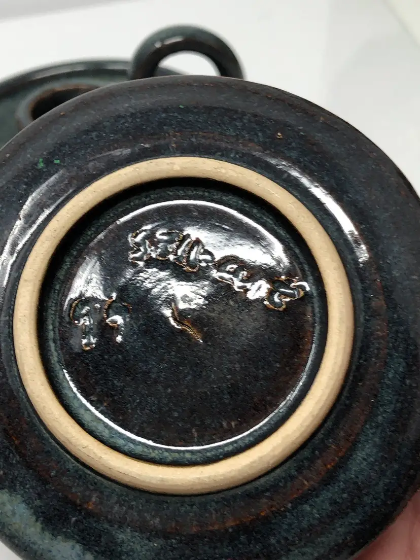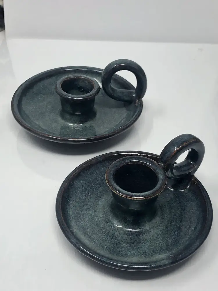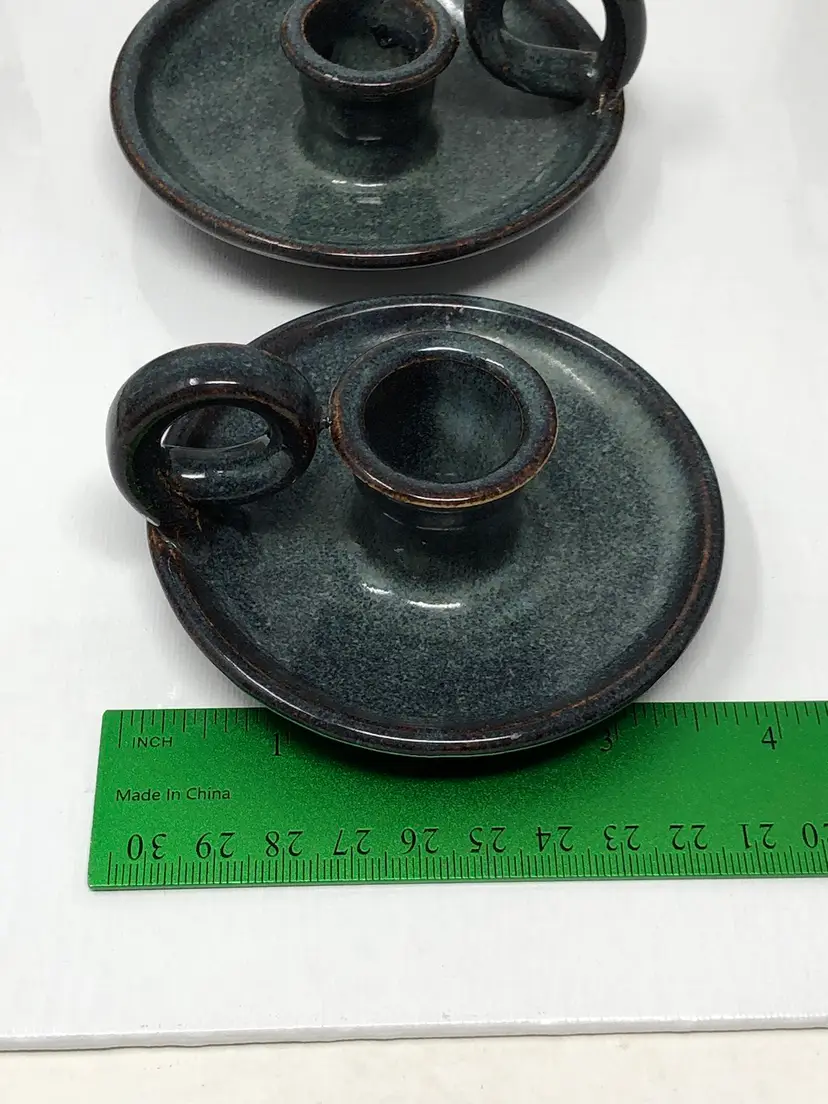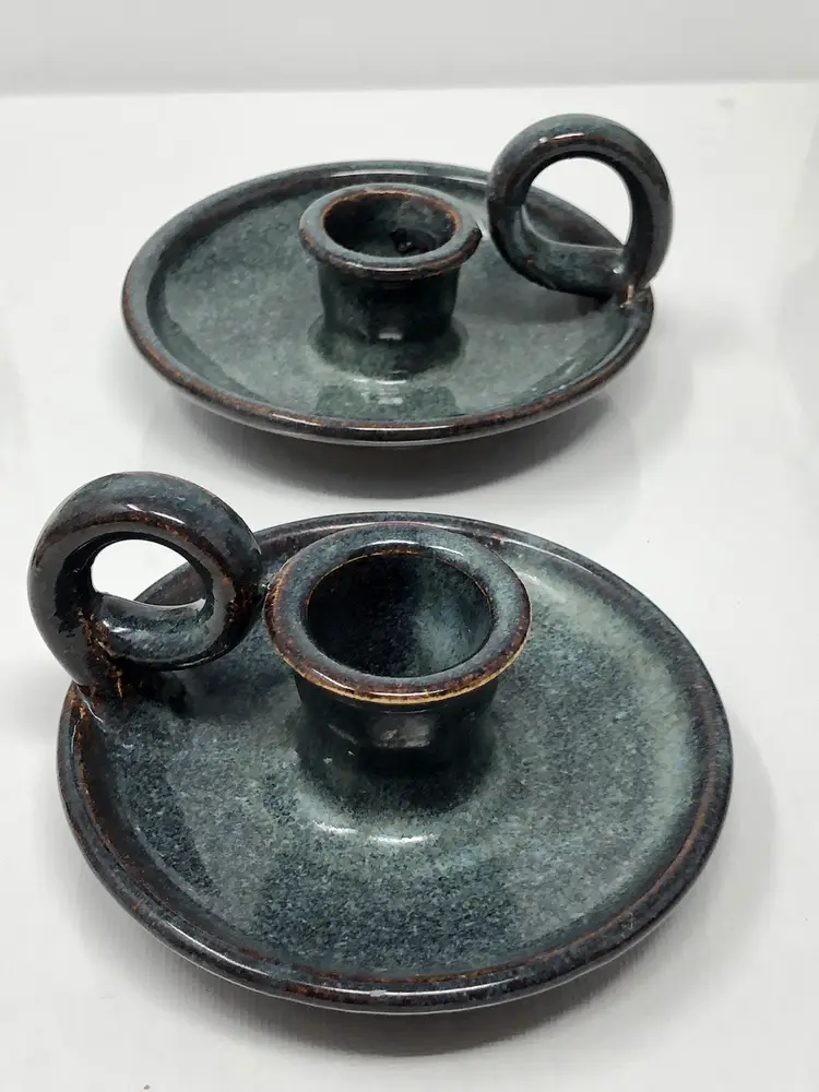 3 1/2" round finger loop candlestick holders. Artist signed and dated '99. No chips or cracks