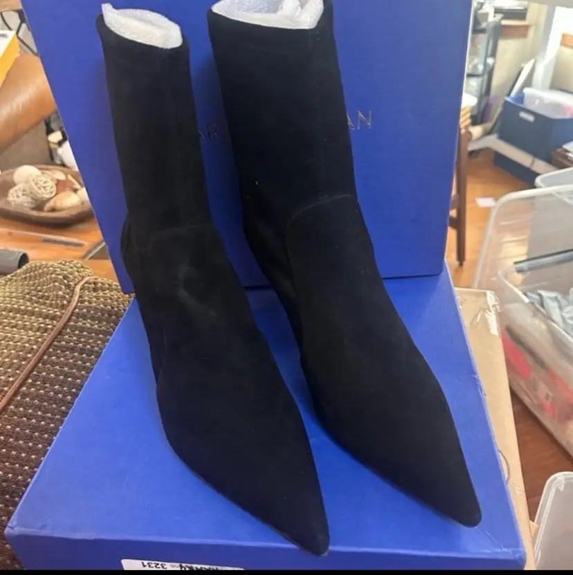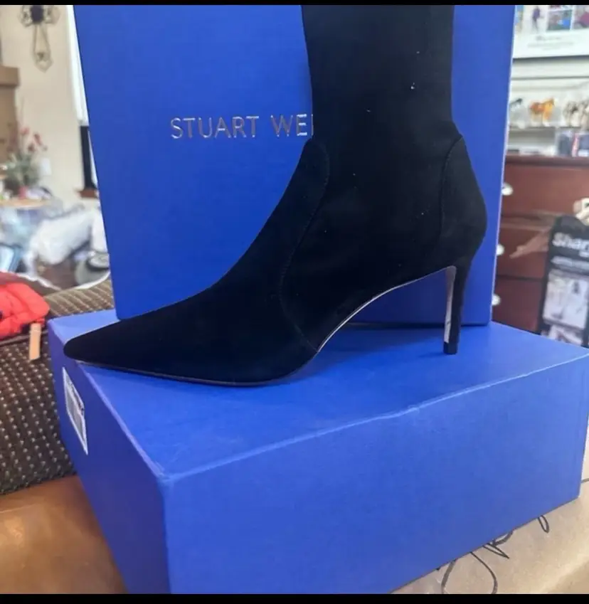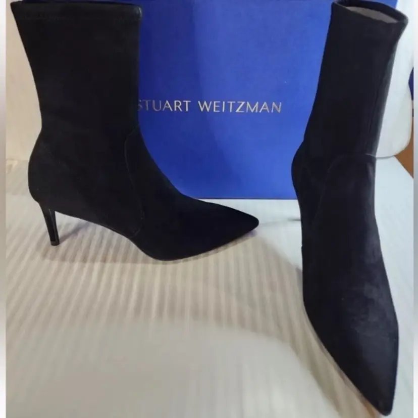 FEATURES Bootie Ankle Stiletto heel Pointed toe Pull-on Sock bootie Industry-leading stretch construction Modernized construction for extra support New foam insole Crafted by SW artisans in Spain A Stuart Weitzman icon Part of the STUART Collection