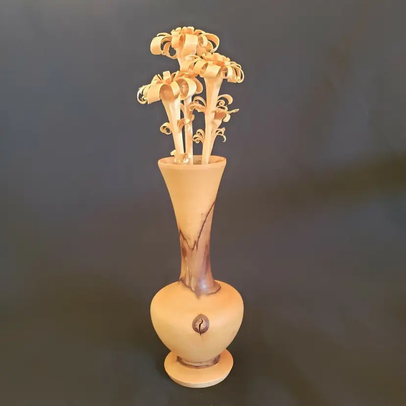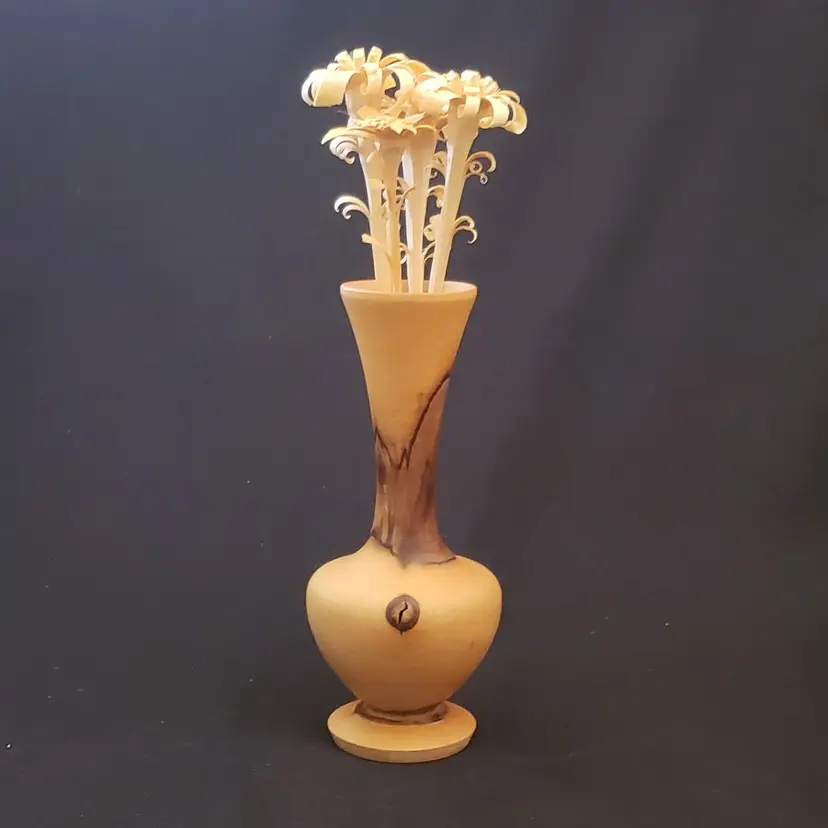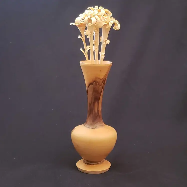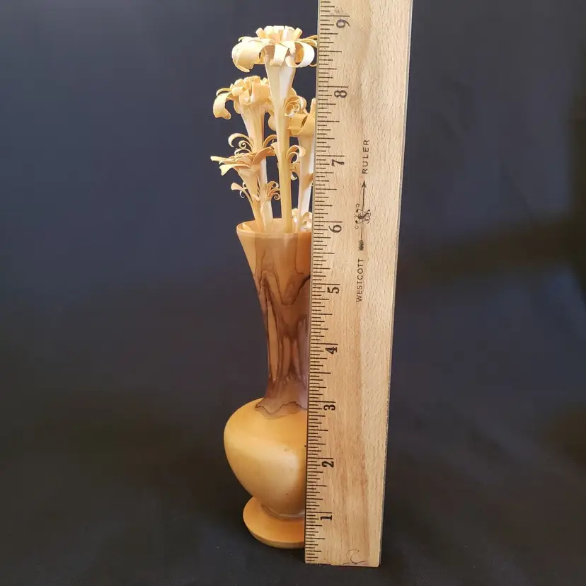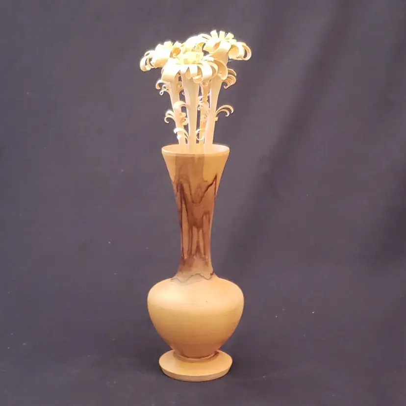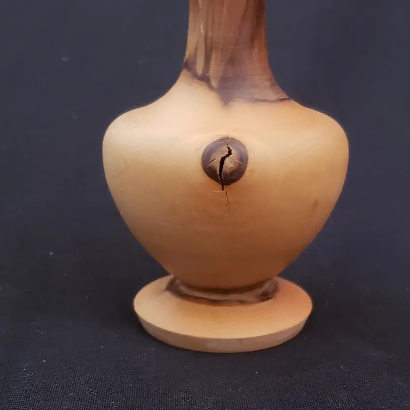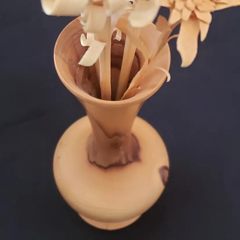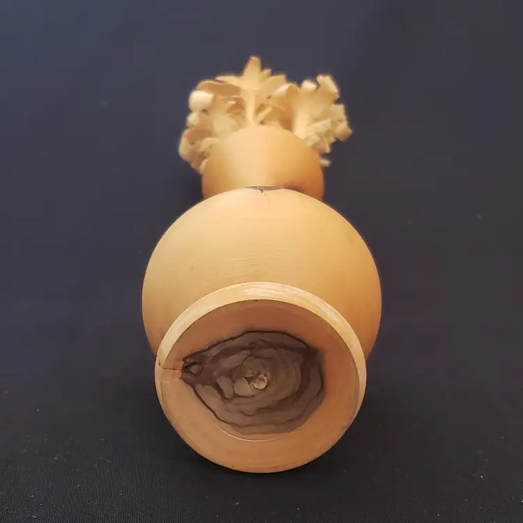 Brand: Unbranded Main Color: Medium Wood Tone, Brown Type: Vase Size: Small Theme: Art Features: Carvings, Turned Wood Material: Wood Country/Region of Manufacture: Unknown Finish: Glossy Handmade: Yes
