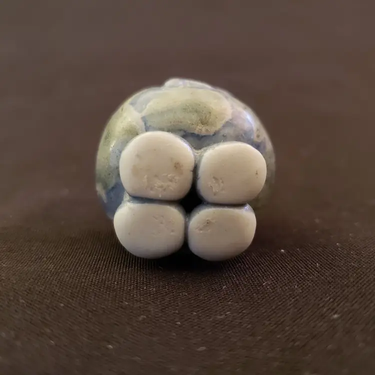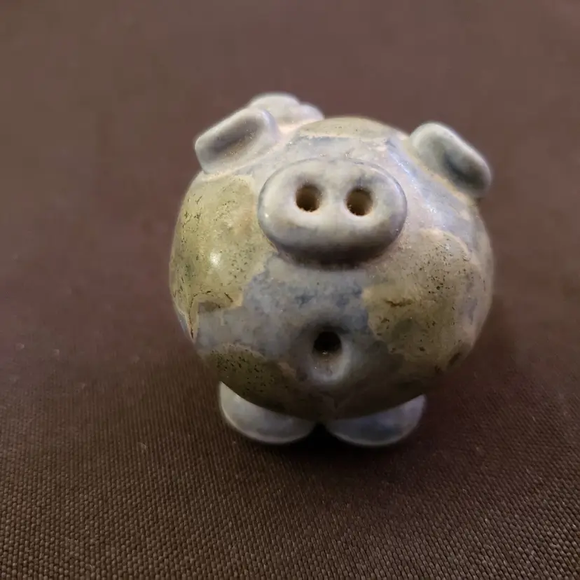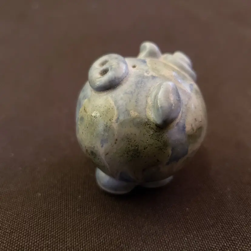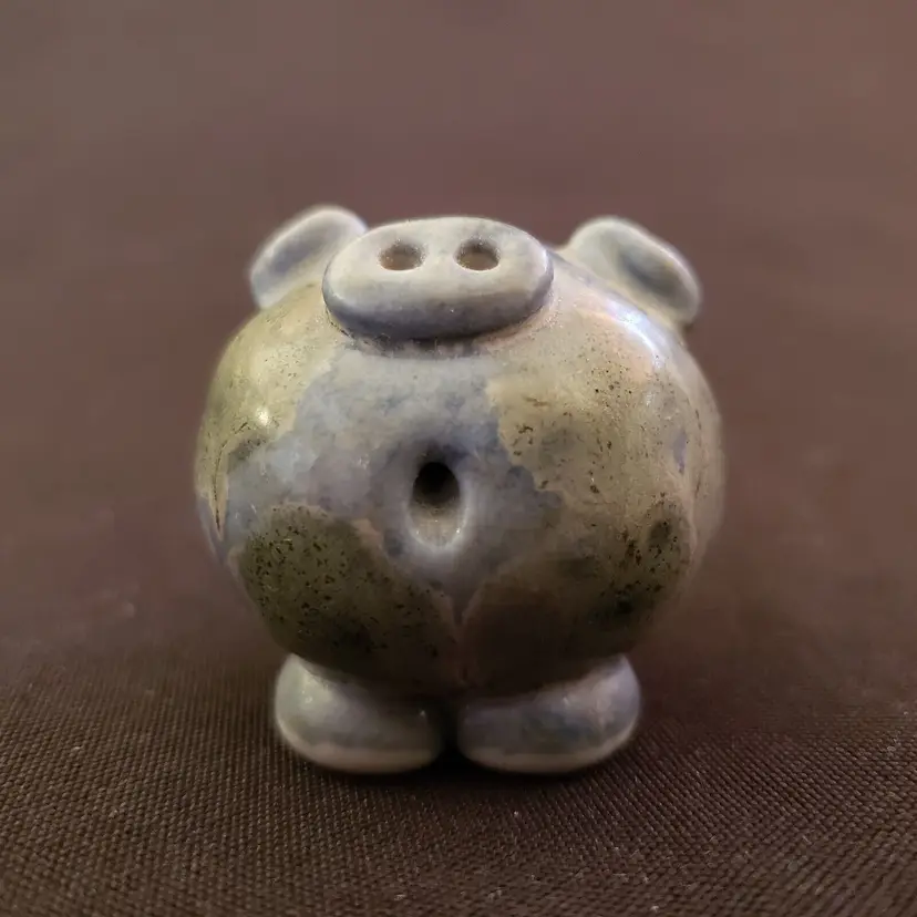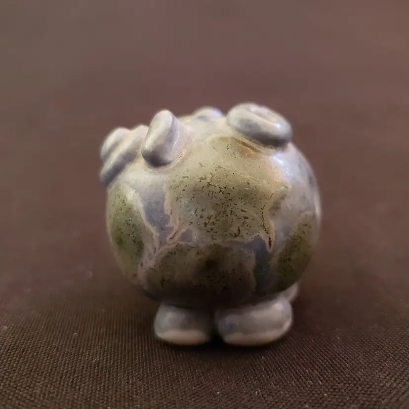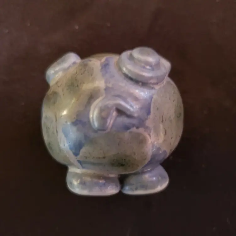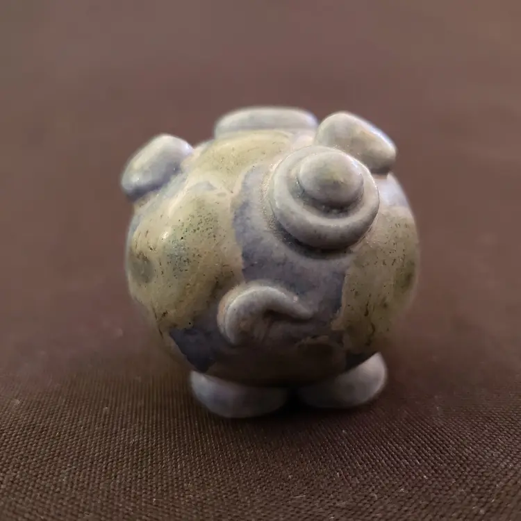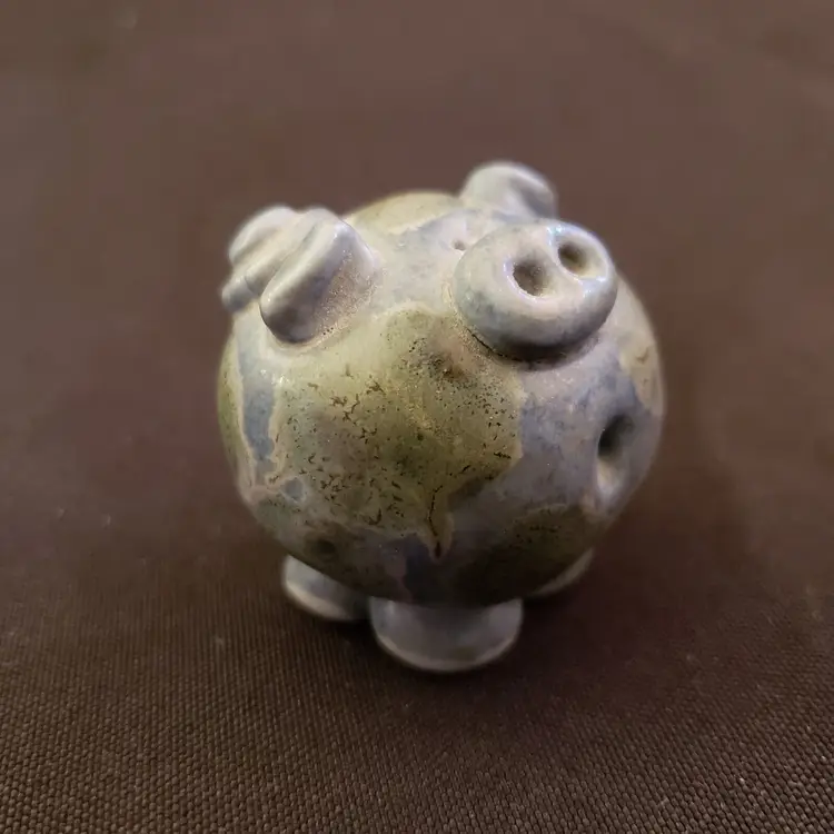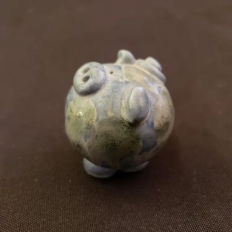 Shape: Round Occasion: All Occasions Size: 1 3/8" Signed: No Animal Class: Pig Color: Brown & Blue Material: Ceramic Additional Parts Required: No Brand: unbranded Type: Figurine Item Height: 1 3/8" Theme: Animals & Dinosaurs Original/Reproduction: Original Features: none Country/Region of Manufacture: Unknown Production Technique: Studio Art Pottery Room: Any Room Handmade: Yes Character Family: Pig Engraved: No