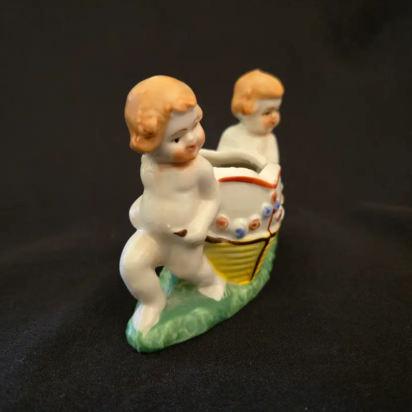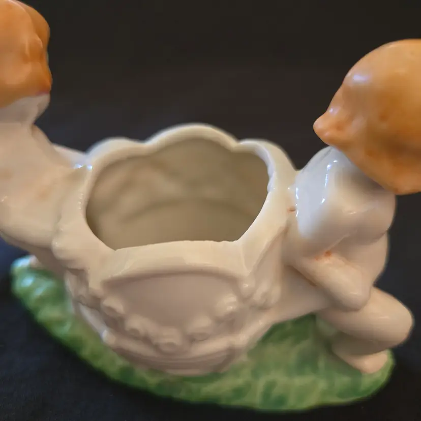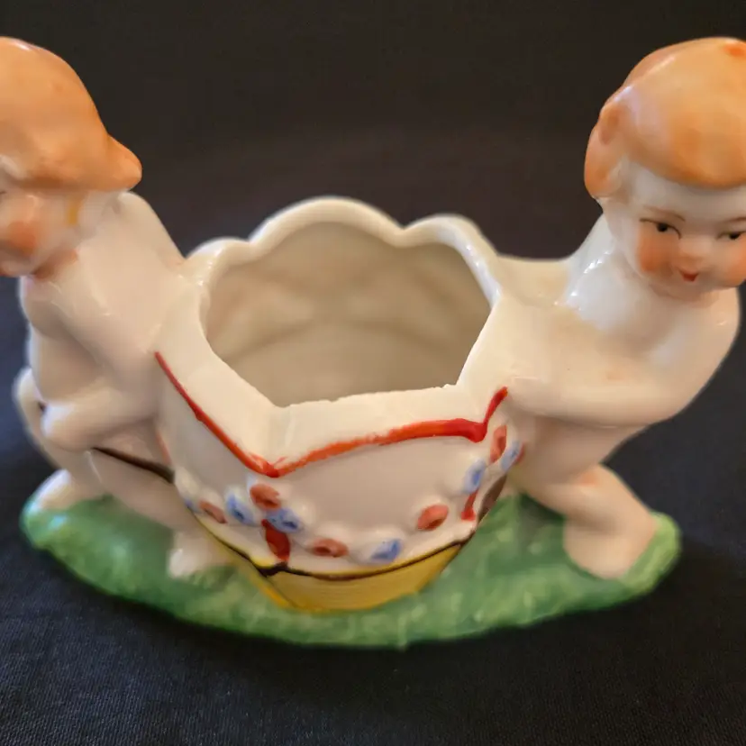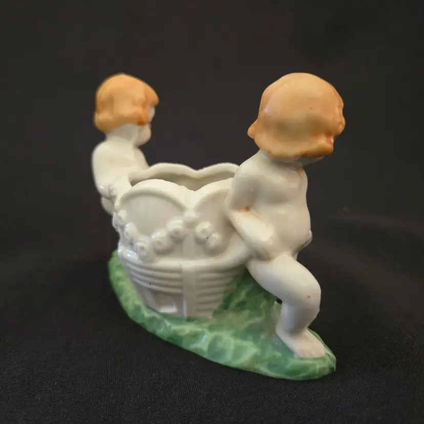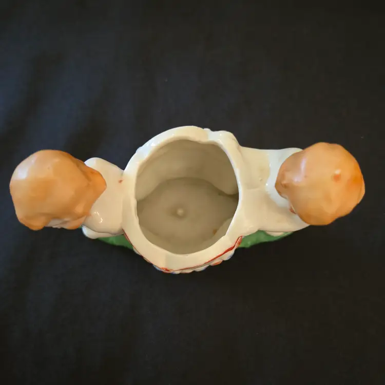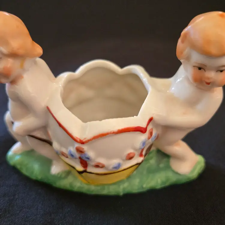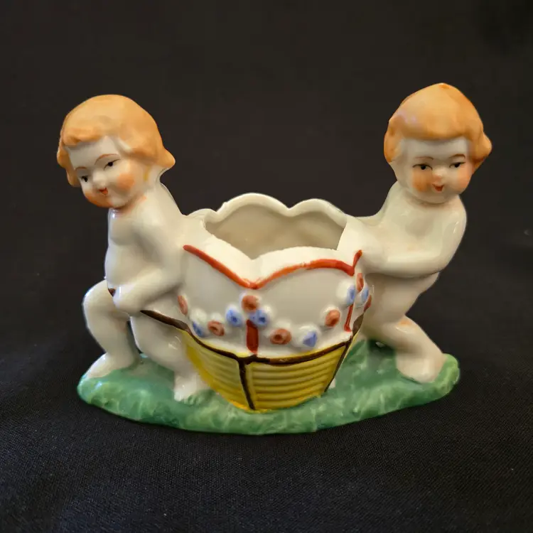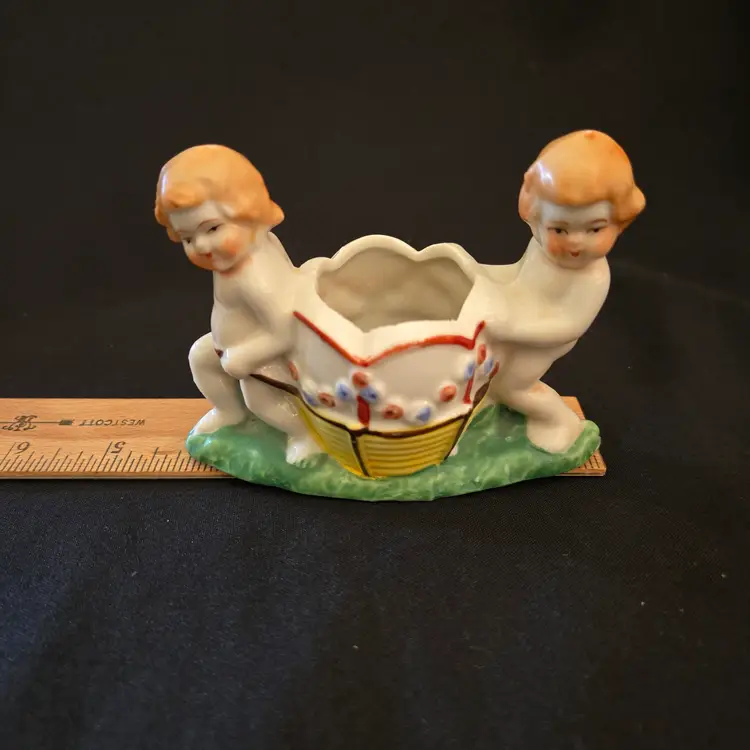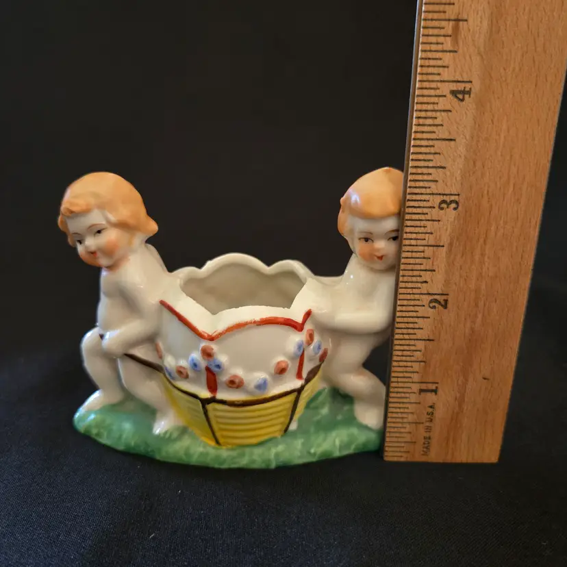 Studio Art Cherubs Planter Vase Pottery Hand Painted made in Japan Vintage. Used condition with missing paint, dirt, stains, overpainting in places, edgewear, fleabites, etc. Please view all the photos and please ask any questions prior to purchase when possible.