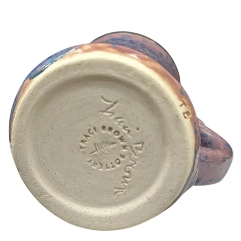 41/2βT 31/2βW no chips, cracks or brakes. Me buy me, Traci Brown never been used right out of the Kiln. Has some roughness on the thumb from being textured you can use it for a worry stone π holds 11oz