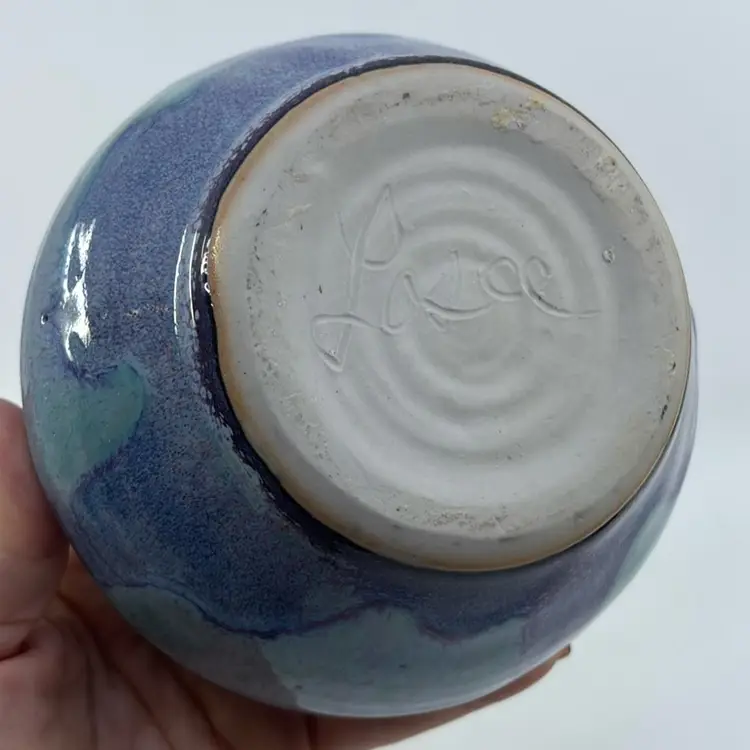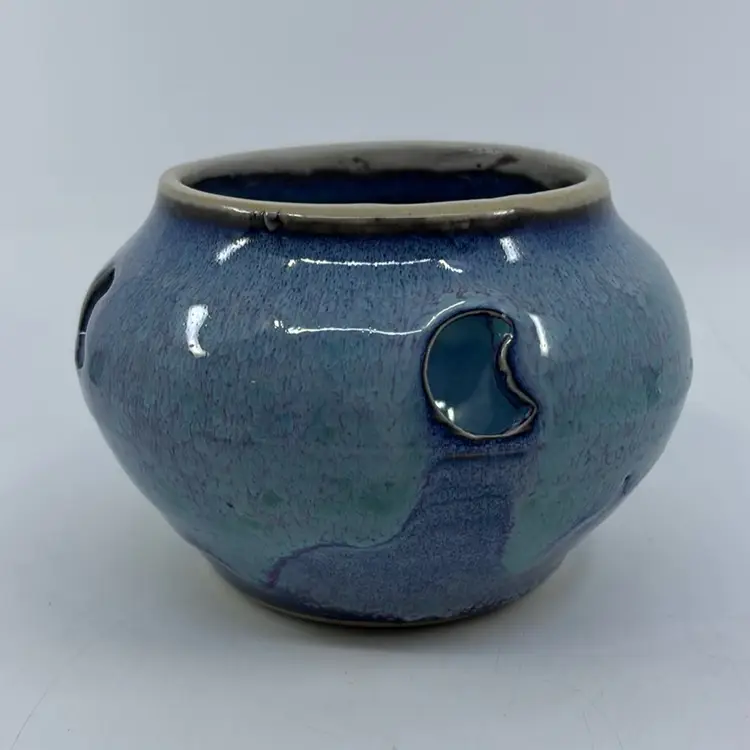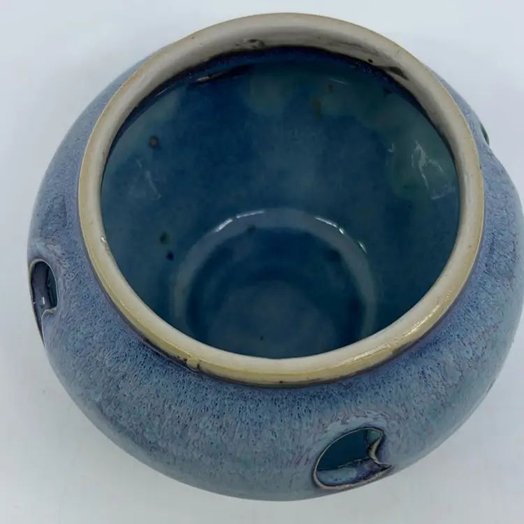 Studio Art Pottery Blue Drip Glaze Planter Bowl 5Dia 4H