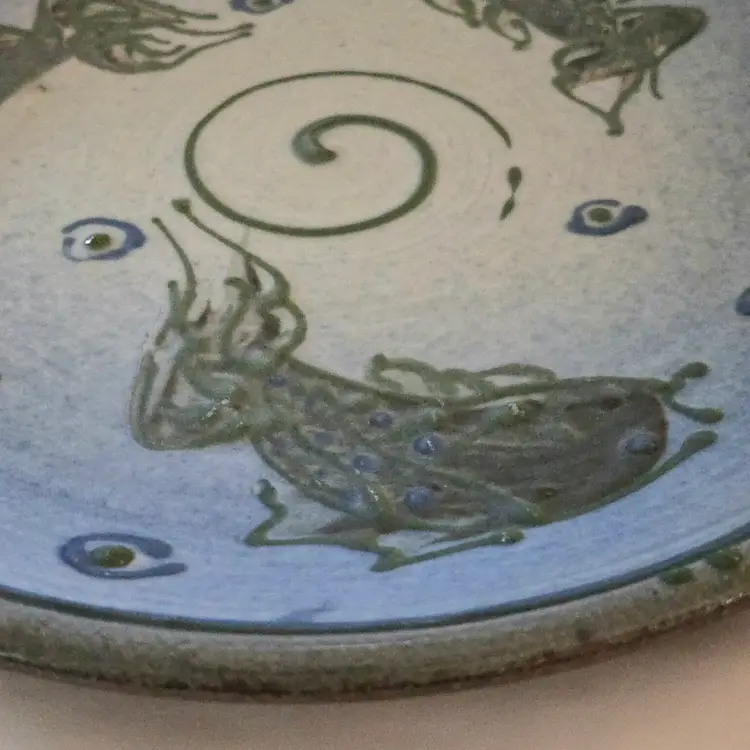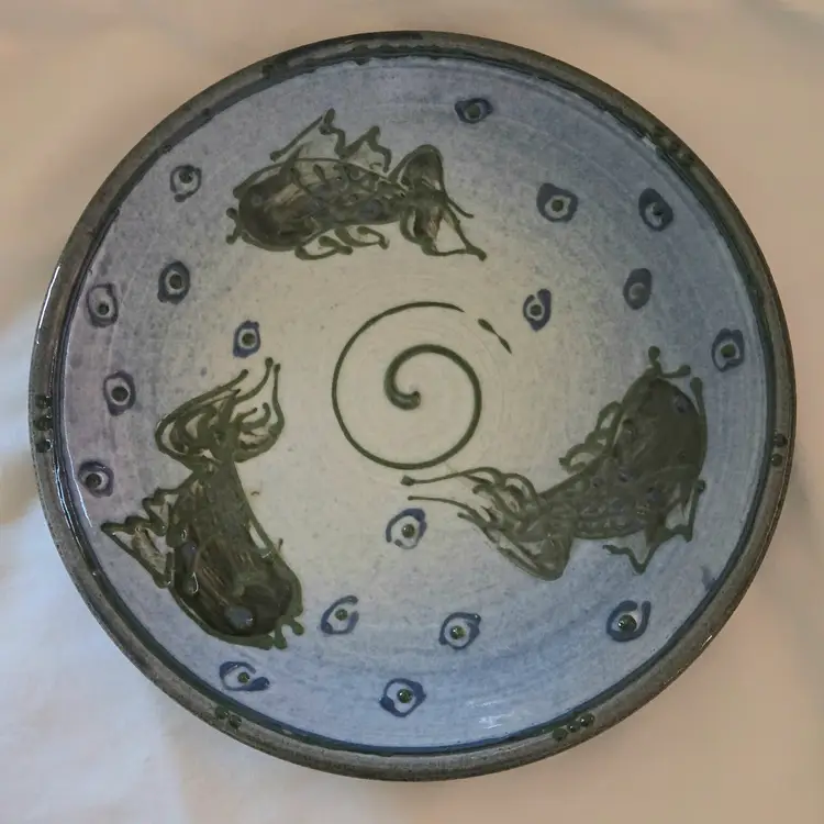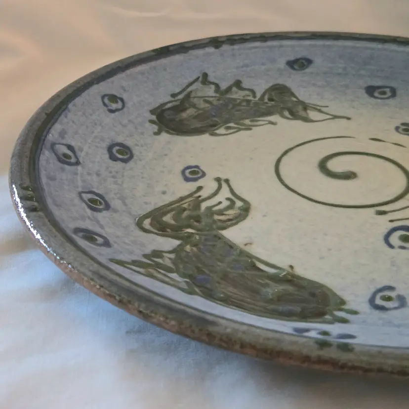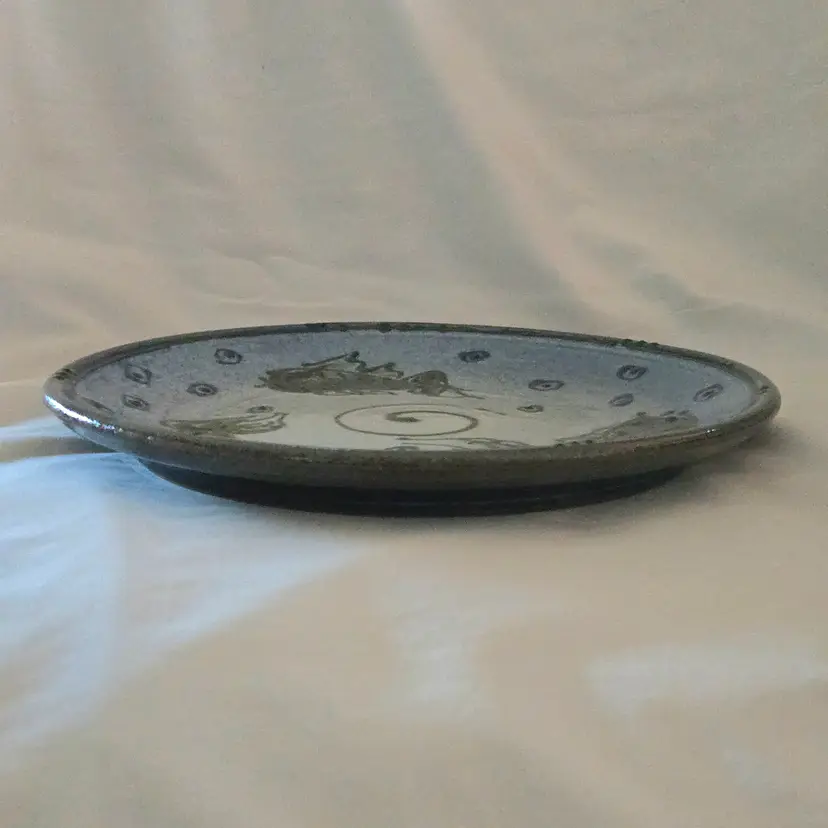 Studio Art Pottery Plate Aquatic Theme with Texture Signed (unreadable) 10½" Diameter. Used condition with slight bit of rubbing to some of the bumps, otherwise looks good. Please view all the photos and please ask any questions prior to purchase when possible.
