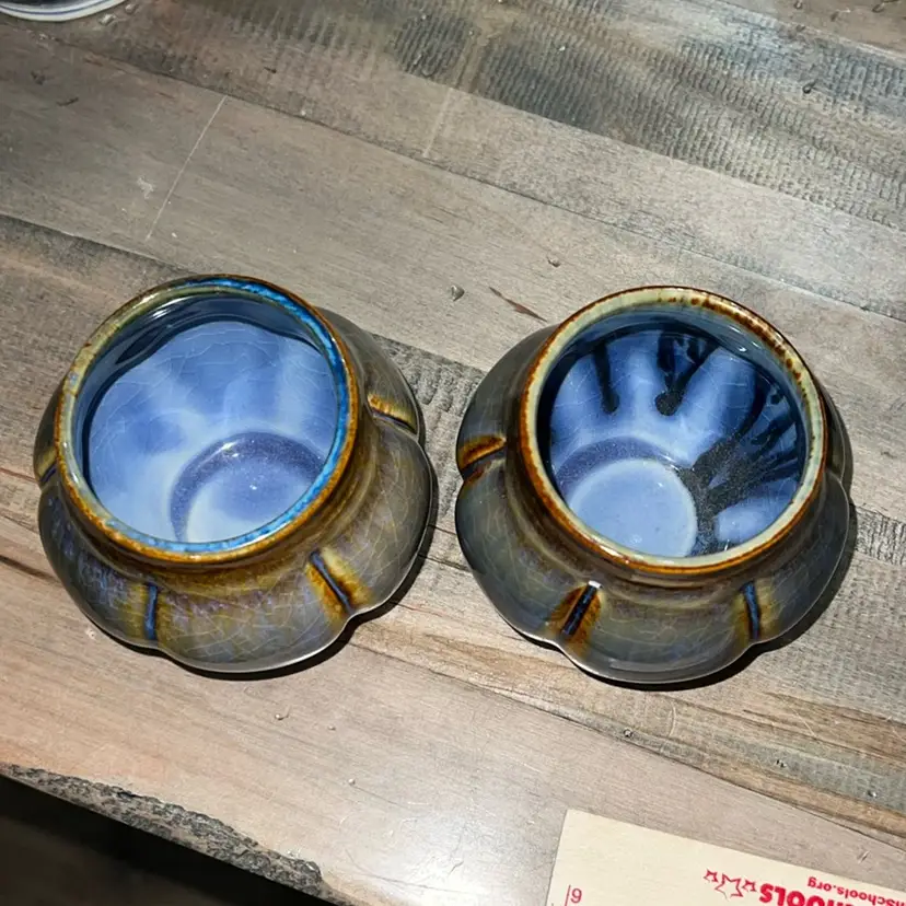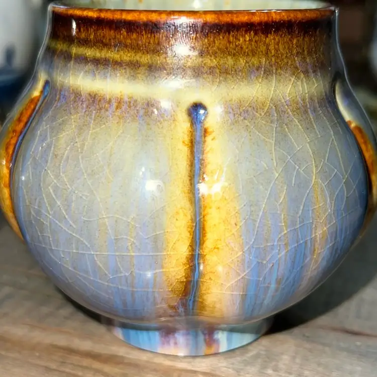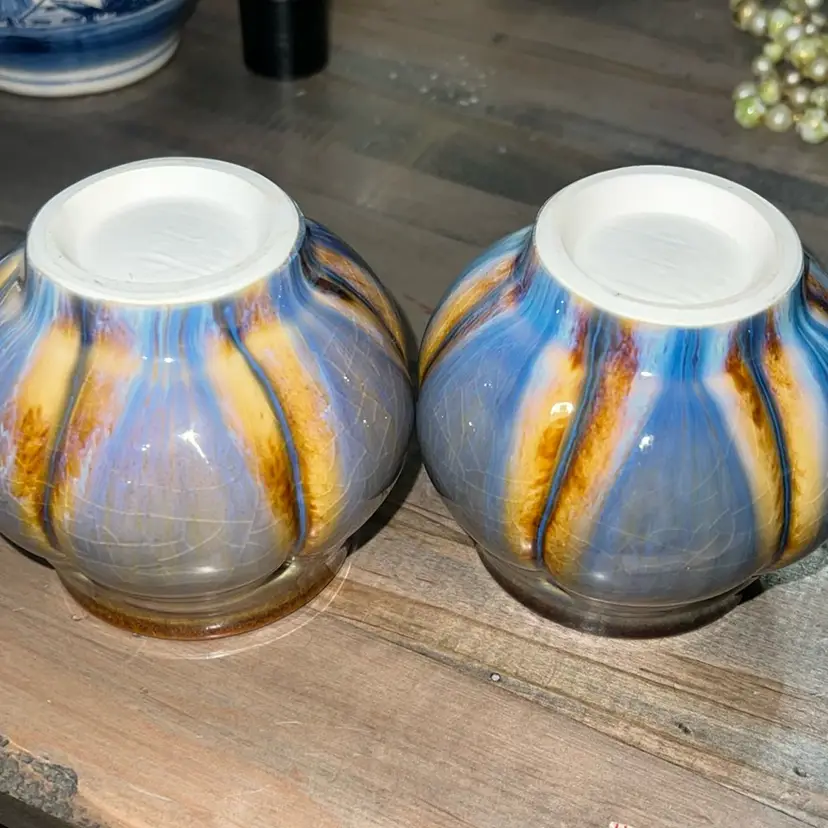 These maybe Bill Campbell… but hard to make out exactly on the bottom to be able to say for sure. Some minor crazing in the clear glaze. Beautiful pair!