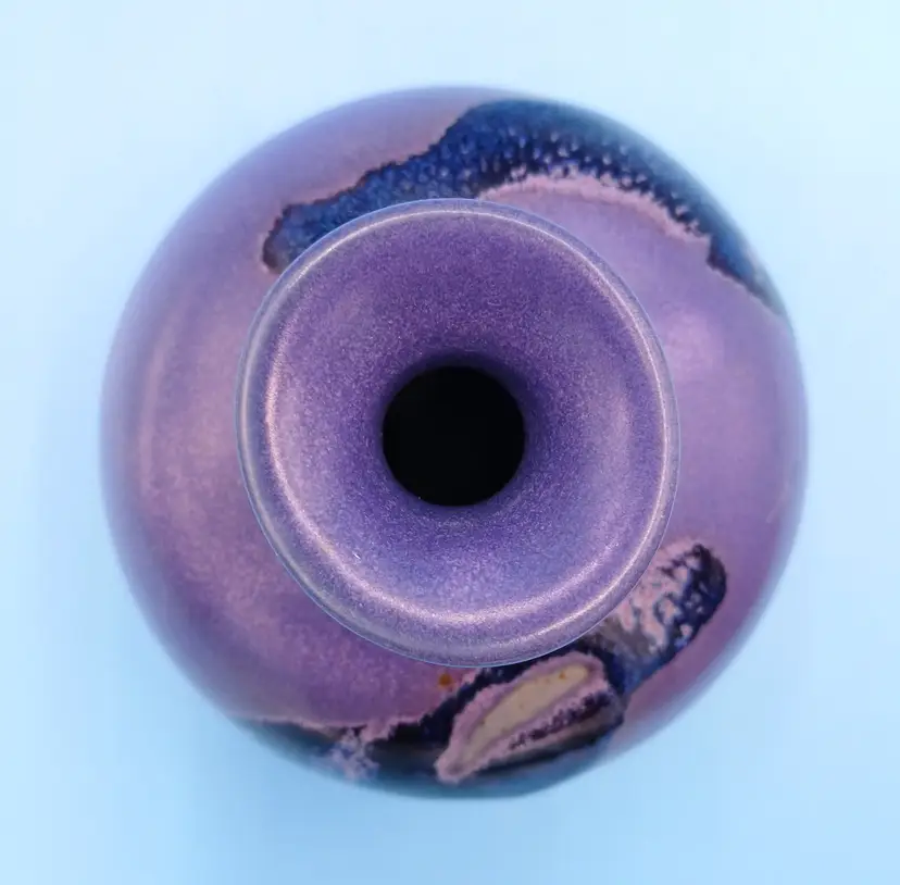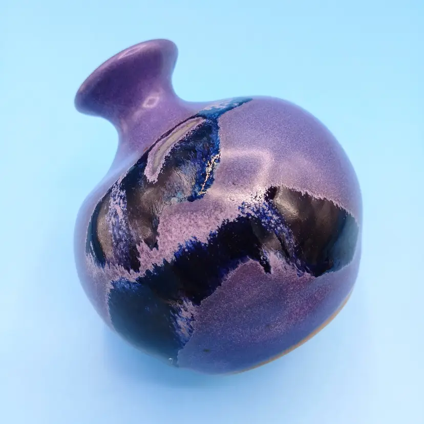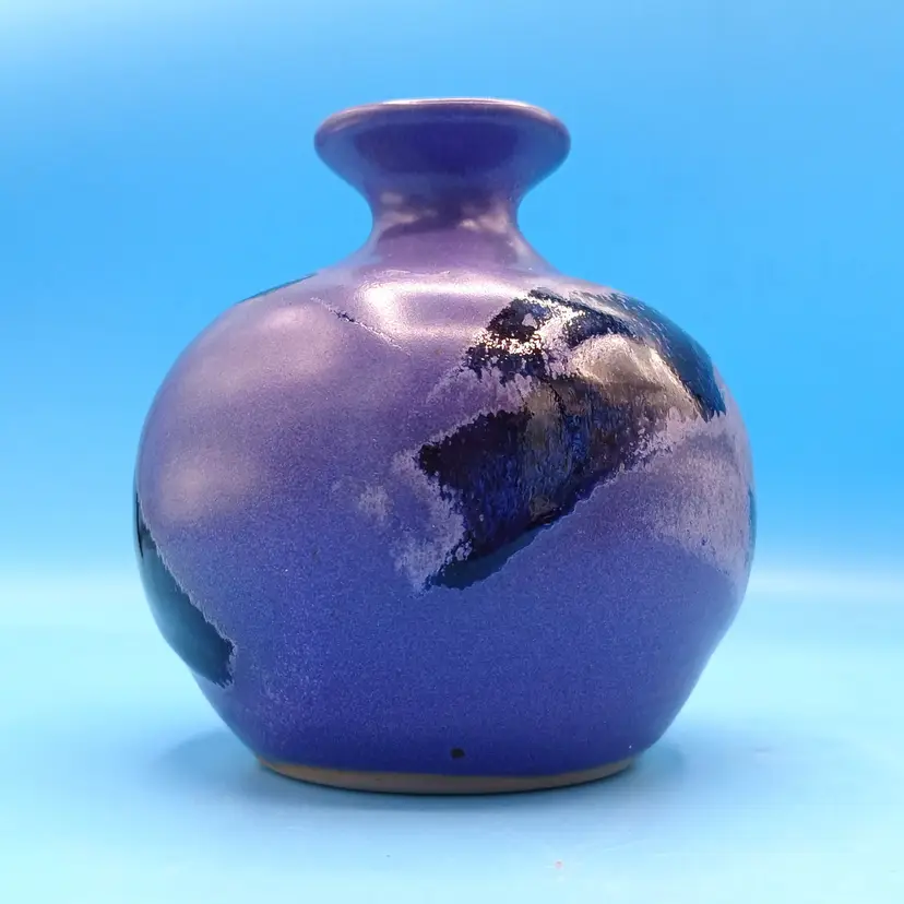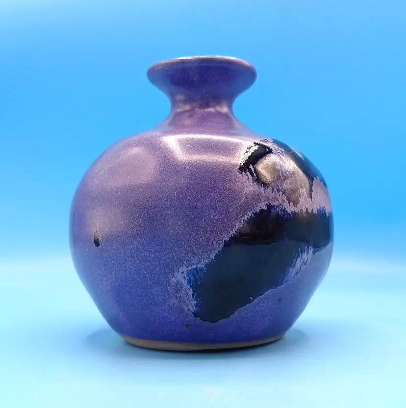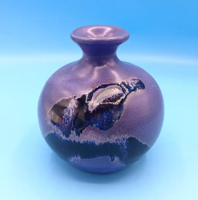 This is a smallish bud or weed vase. No damage. Signed on the bottom but I can't read the signature. It's almost 4" tall and 3.5" in circumference. A beautiful little piece. Thanks for looking!