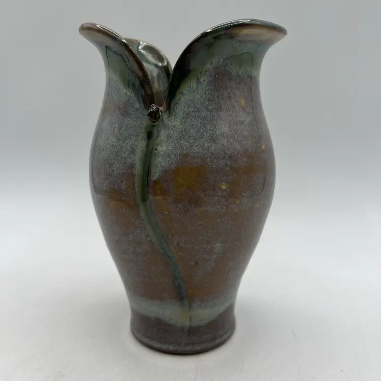 Studio Art Pottery Stoneware Drip Glaze Petal Vase 6.5" Blue Purple Signed