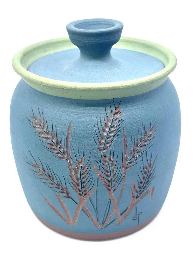 The jar is crafted by the renowned artist D. Paul and features a stunning blue and green color combination. It is an original piece and has a production style of art pottery. This jar is perfect for anyone who is looking for a unique and decorative item to add to their home.