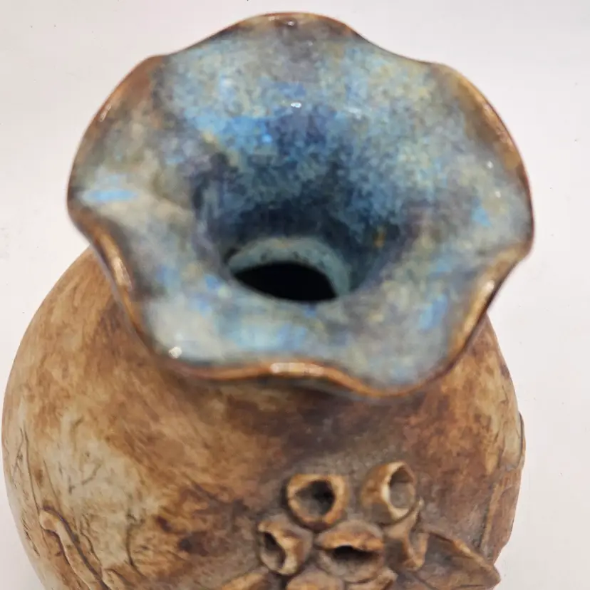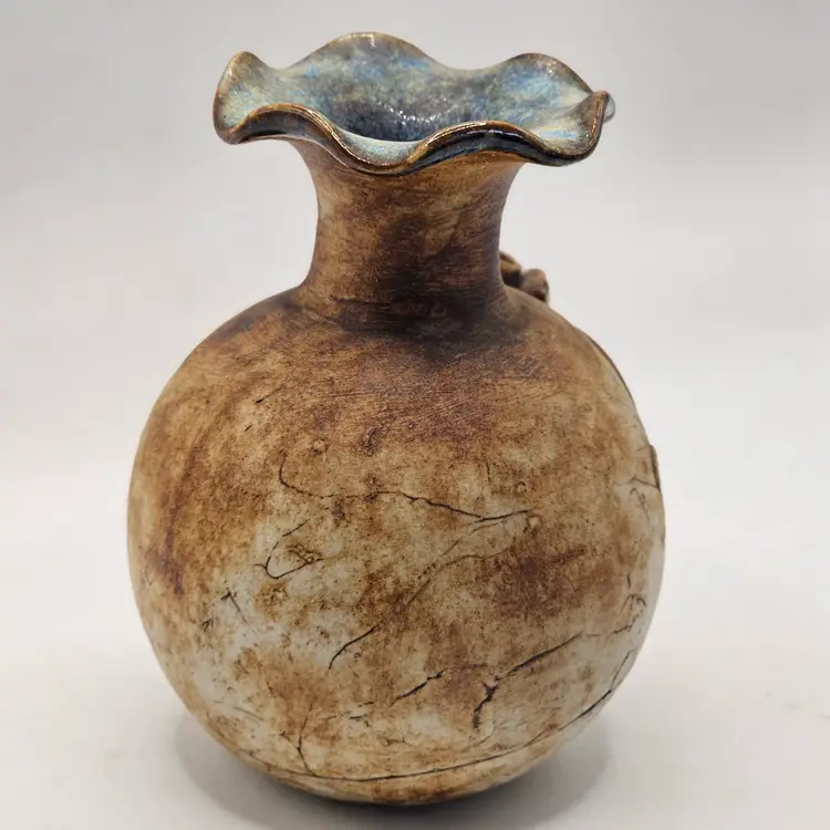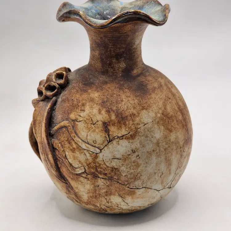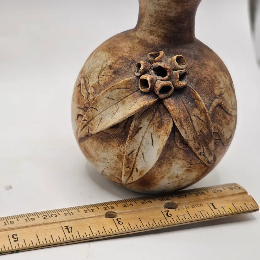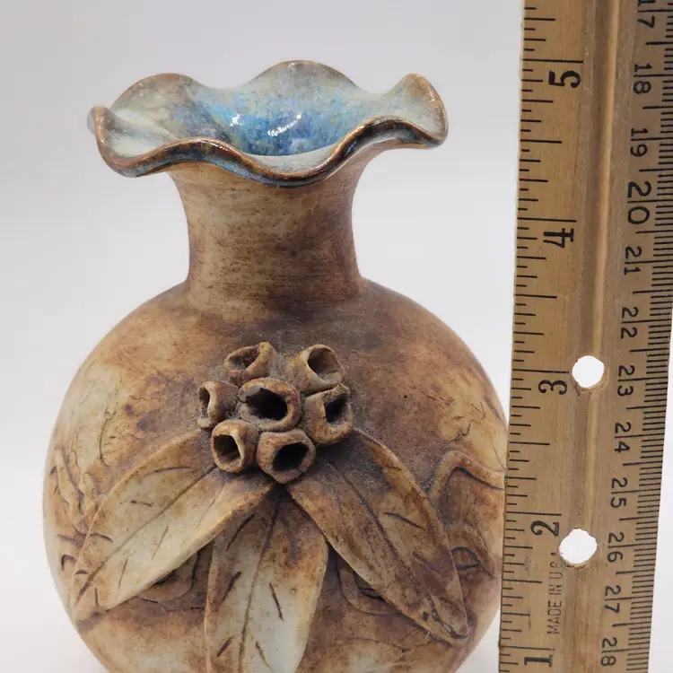 Studio Art Pottery Vase 3D floral Leaf 5" bud Vase Signed