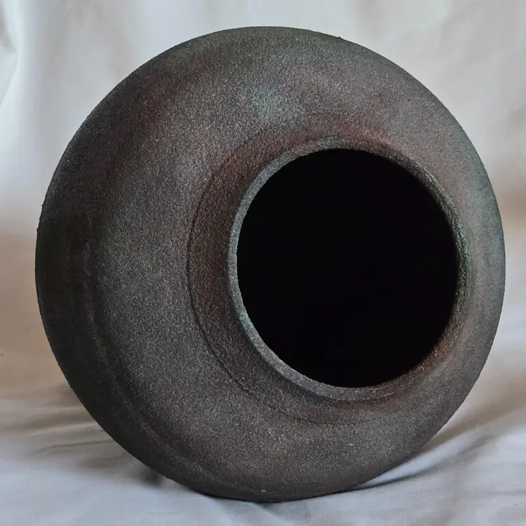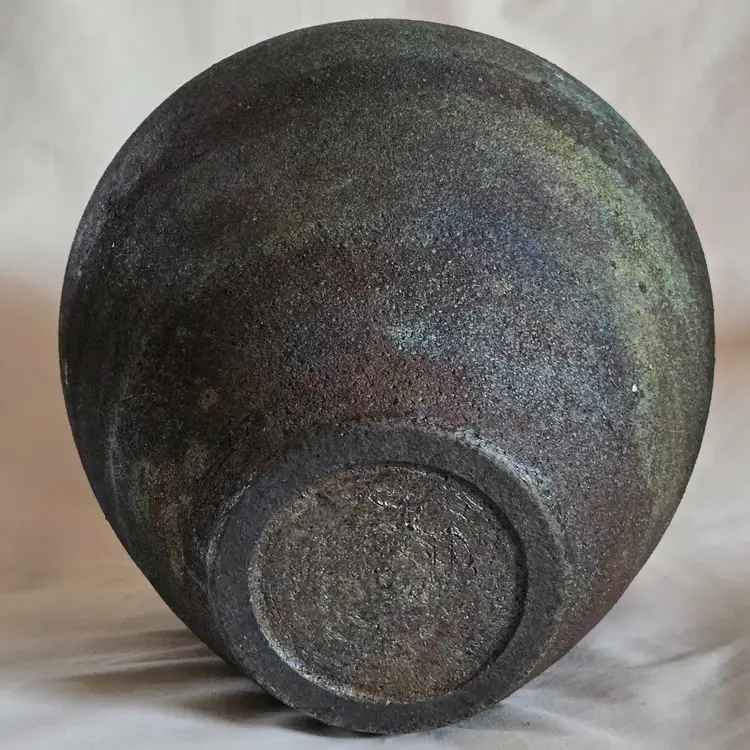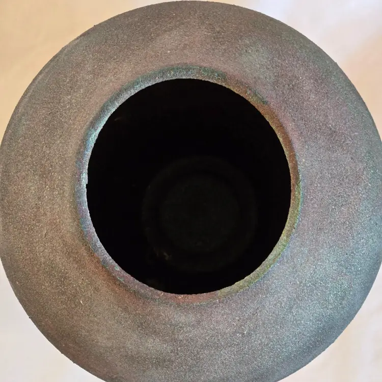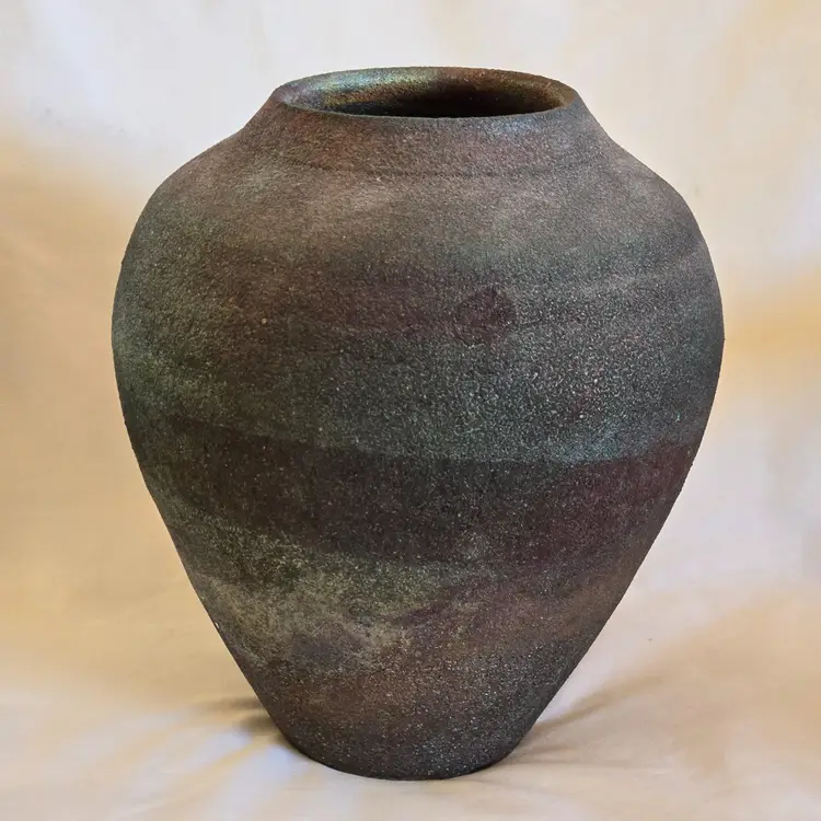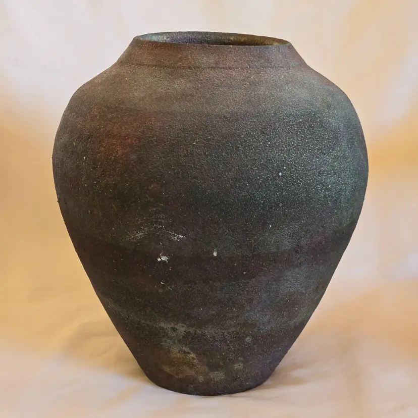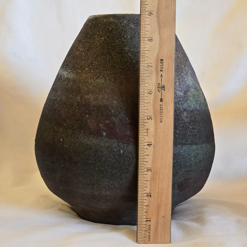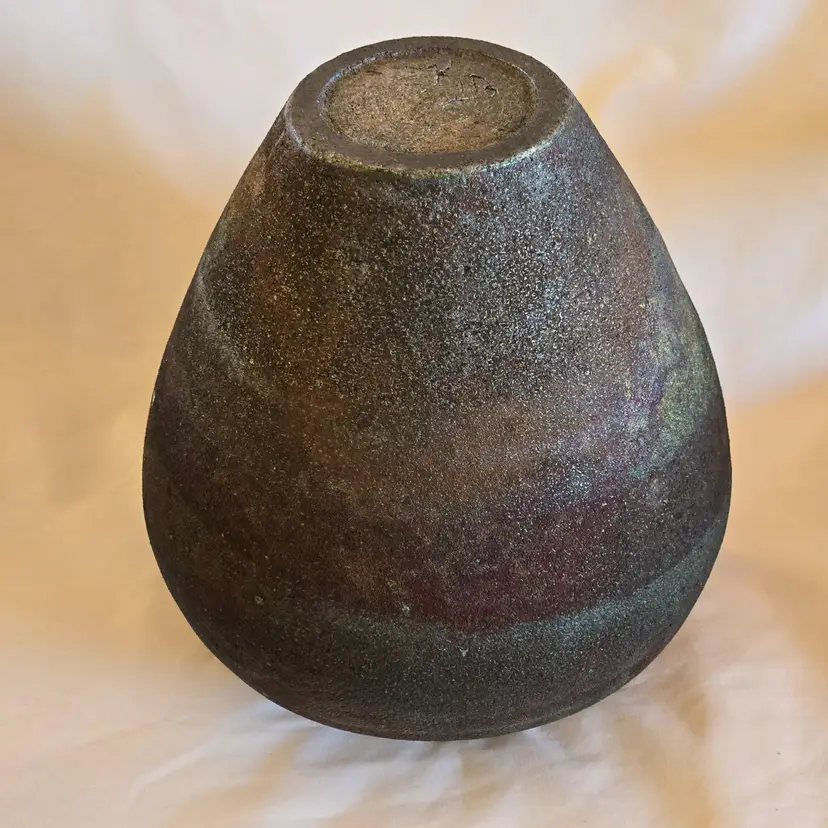 Studio Art Raku Pottery Signed KB No Date Subtle Color Highly Textured 8¾" Tall 7½" Diameter Approximately. Used condition with some dirt, scratches, white stuff, etc. Please view all the photos and read the entire item description and please ask any questions prior to purchase when possible.