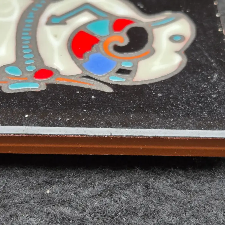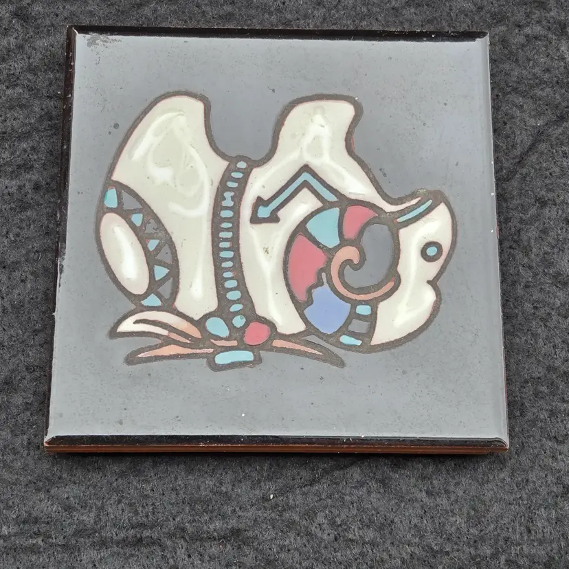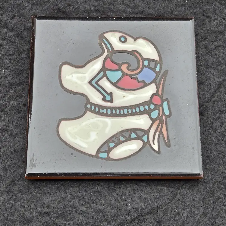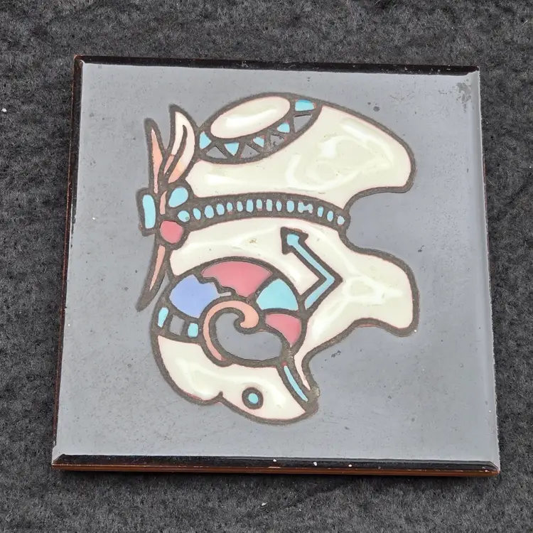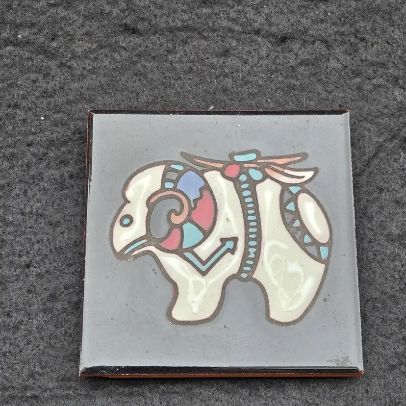 Studio Art Tile New Mexico Cleo Teissedre Ram Wall Art Trivet Coaster 4"×4" Vintage with Condition Issues. Used condition with spots of missing glaze, chipped corners on backside, dirt, stains, scratches, nicks, edgewear. Please view all the photos and please ask any questions prior to purchase when possible.