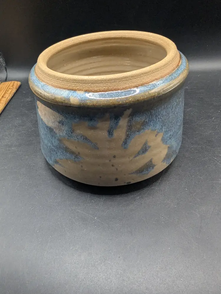 This is a lovely Studio Doe Ridge Pottery By Robert 'Bob' Meier Leaf Motif Planter Signed. No chips or cracks. Please see all pictures for condition and measurements.