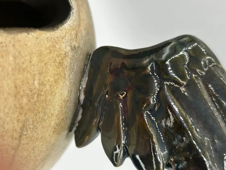 Signed. Chip on foot, crack at base of one wing (see live)