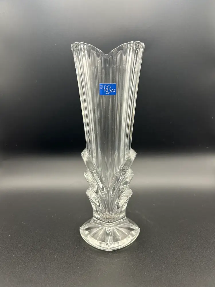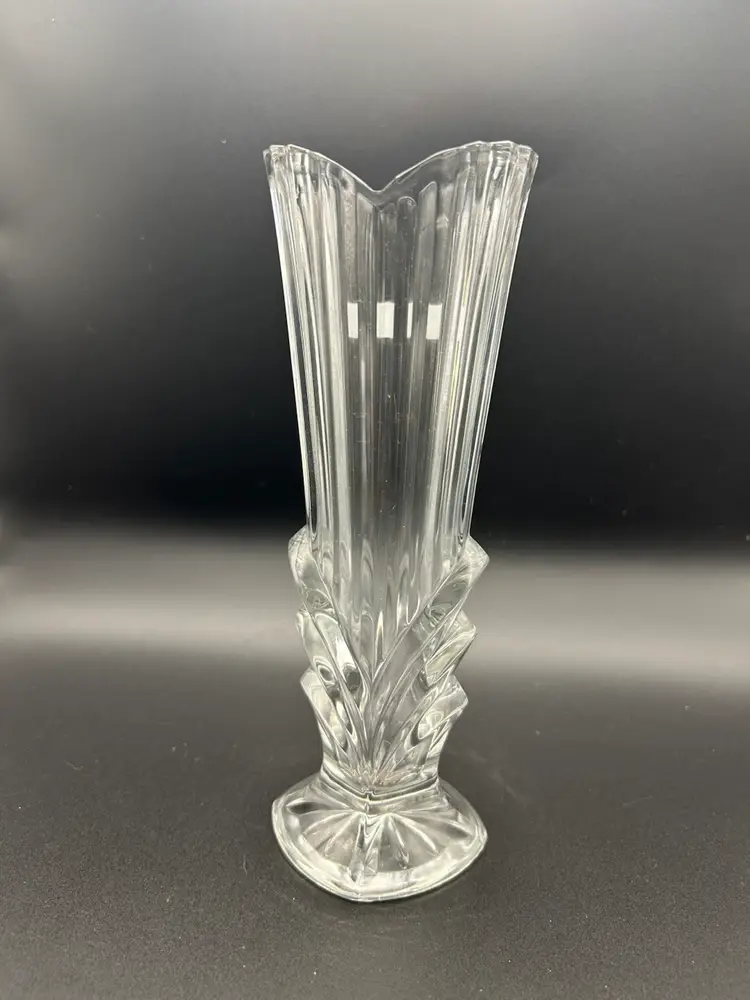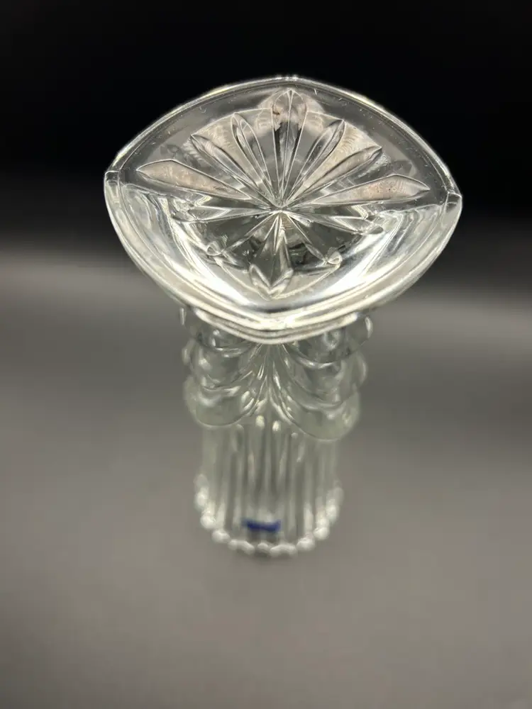 Vintage lead crystal heart shaped opening is in mint condition, no chips, cracks or repairs. It measure’s approximately 8” tall and 3” in diameter.
