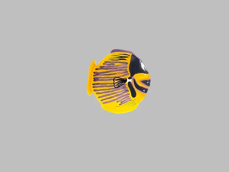 Brand: Studio Nova Pattern: Reef Fish Origin: Made in Italy Material: Glazed ceramic Colors: Bright yellow, black, and purple Style: Coastal / Nautical / Ocean-themed Use: Serveware, wall décor, or collectible accent Size: 10 in Condition: Good condition. No chips or cracks.