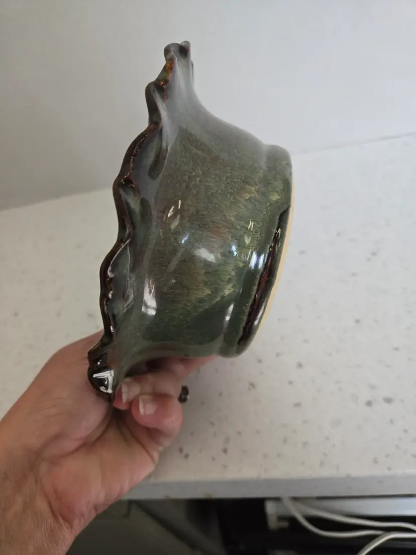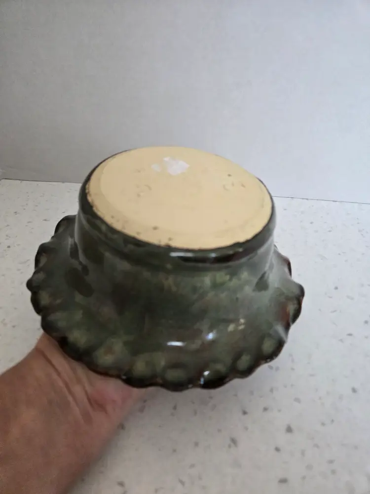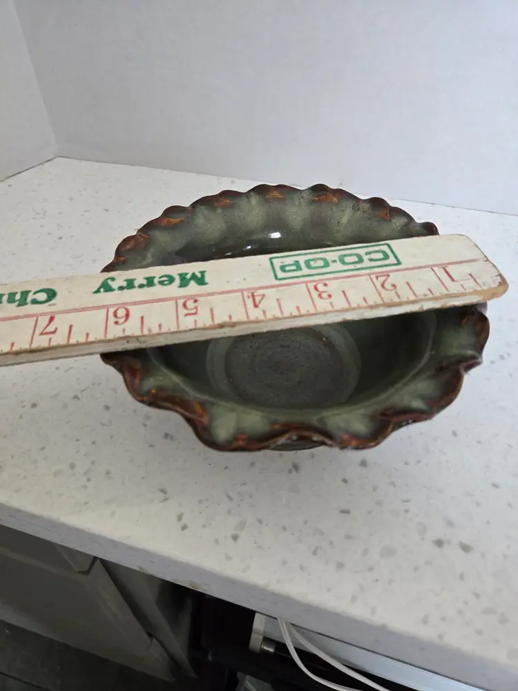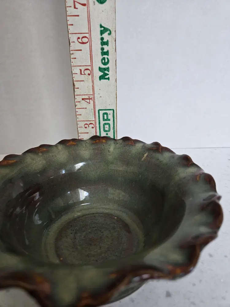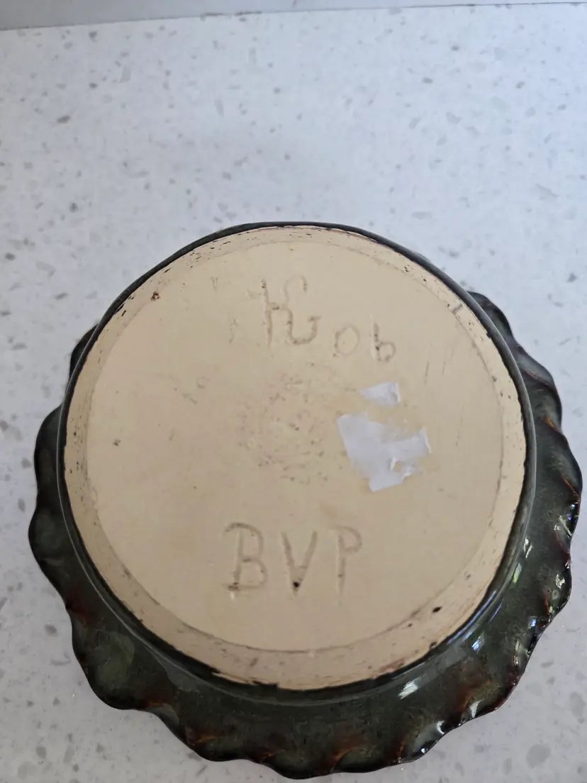 6" Studio Pottery Bowl, glazed teal & brown, signed KG '06, BVP , Scalloped edge, approximately 2½" tall, no chips or cracks