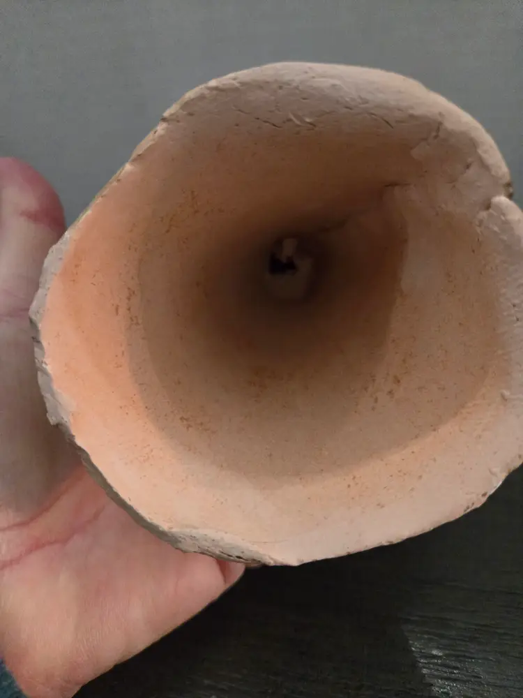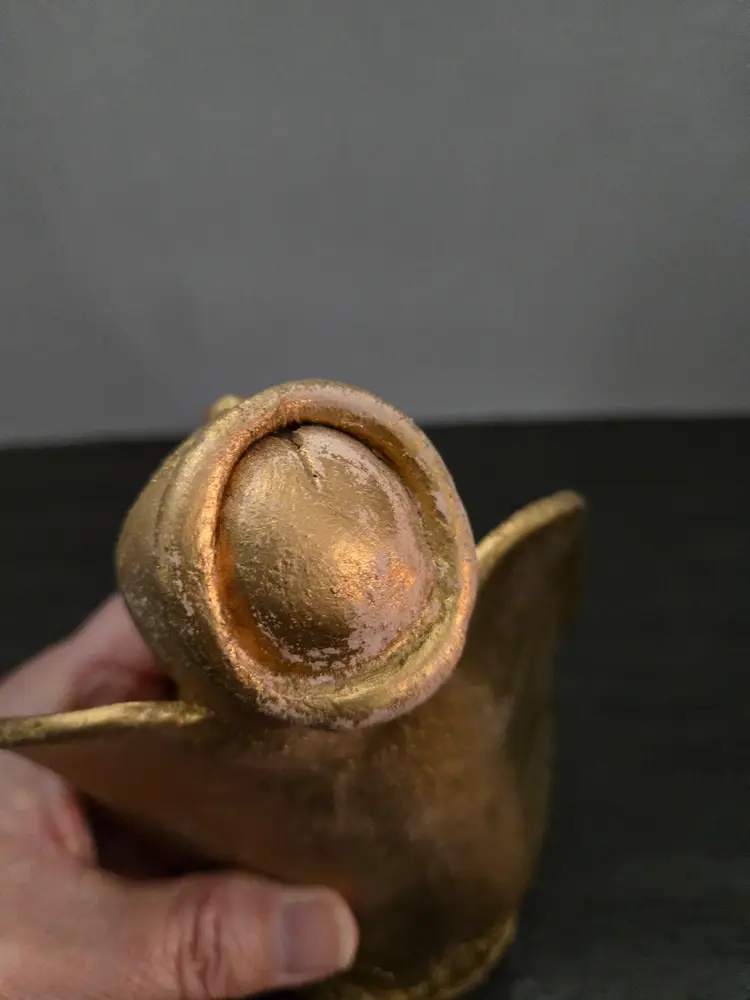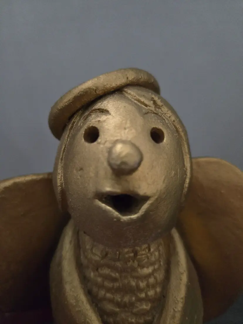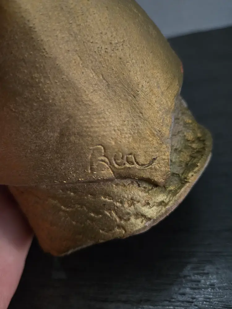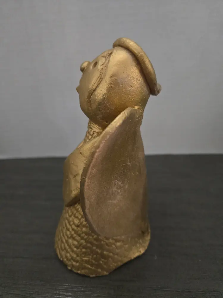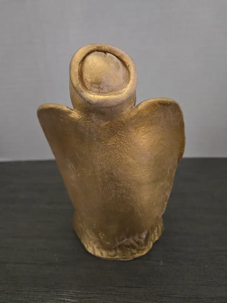 Handmade angel, signed by artist, super cute!, approximately 5" tall, signed Bea, redware, gold in color