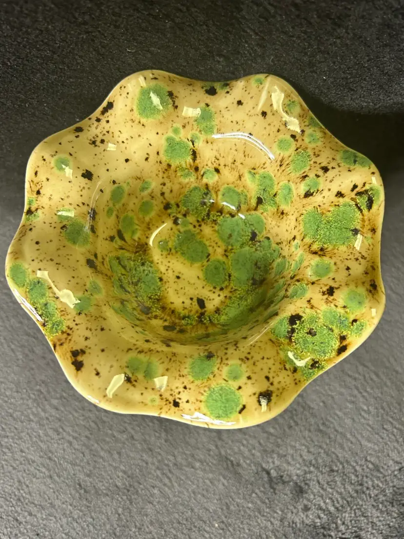 Studio Pottery Art Ceramic Dip Chiller Green And Yellow