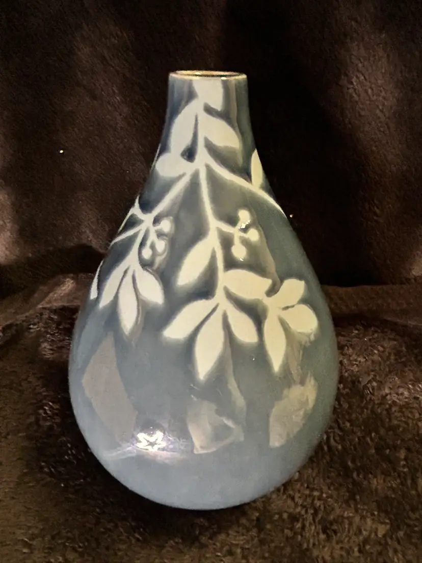 The Studio Pottery Art Slate Blue Vase with Flowers and Bird is a beautifully crafted piece of decorative pottery. The vase features a unique design with a slate blue color and intricate details of flowers and a bird, adding a touch of artistry to any space. Its production style as art pottery gives it a distinctive aesthetic that will surely stand out in any collection of vases or pottery. Perfect for displaying flowers or simply as a standalone decorative piece, this vase combines functionality with artistic flair.