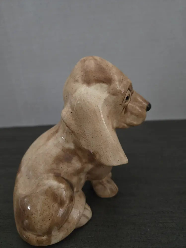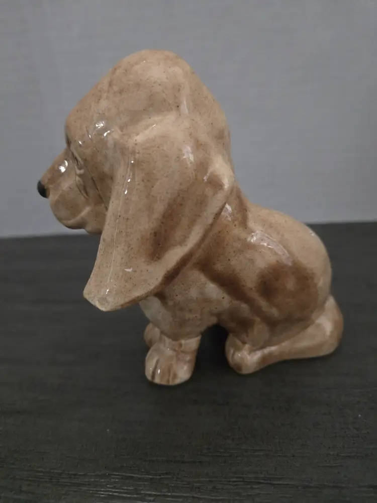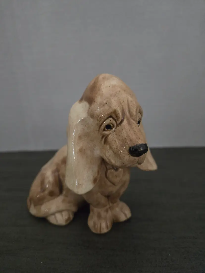 4" tall, handmade Bassett Hound pup, signed by artist Scott Wilburn?, adorable!!