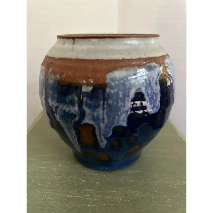 Unique glaze finish with shades of blue that gives it a charming, artisanal look, this piece is perfect for displaying fresh flowers or as a standalone accent. Its earthy tones and textured surface bring a cozy, vintage vibe to any space. Note: Some natural variations in color and finish due to the handcrafted nature. No Chips or Cracks