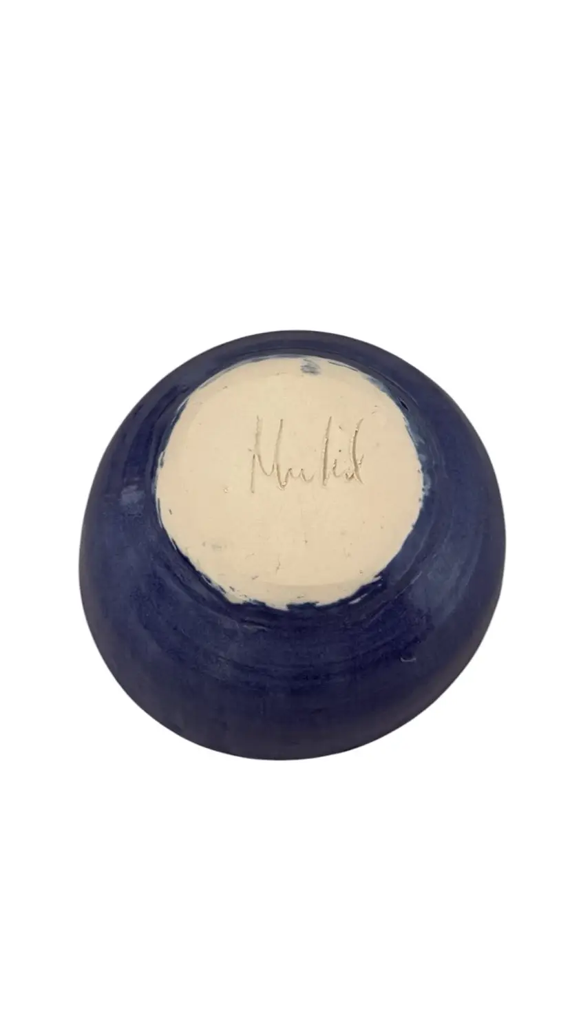 Studio Pottery Blue Glazed Bowl Drip Effect Accent Artist Signed Measures 6”W x 2.75”H Enhance your home decor with this elegant one of a kind blue ceramic bowl. Its rich color adds a touch of sophistication to any space.