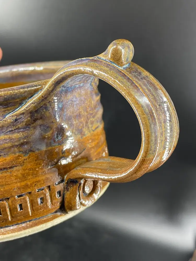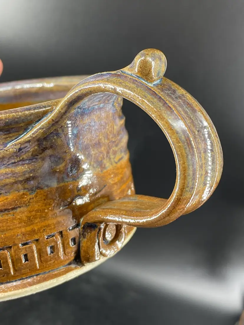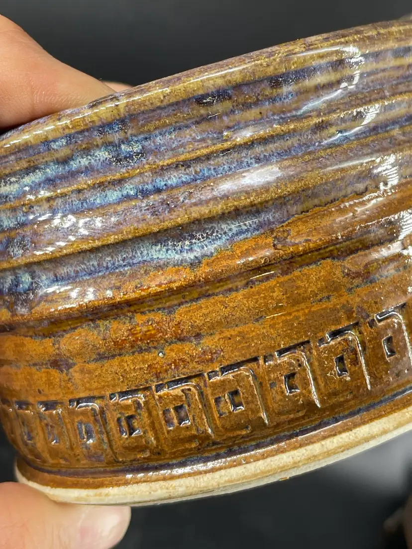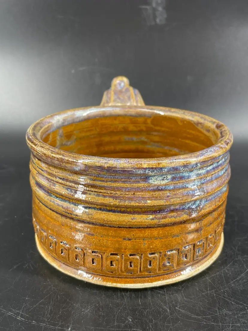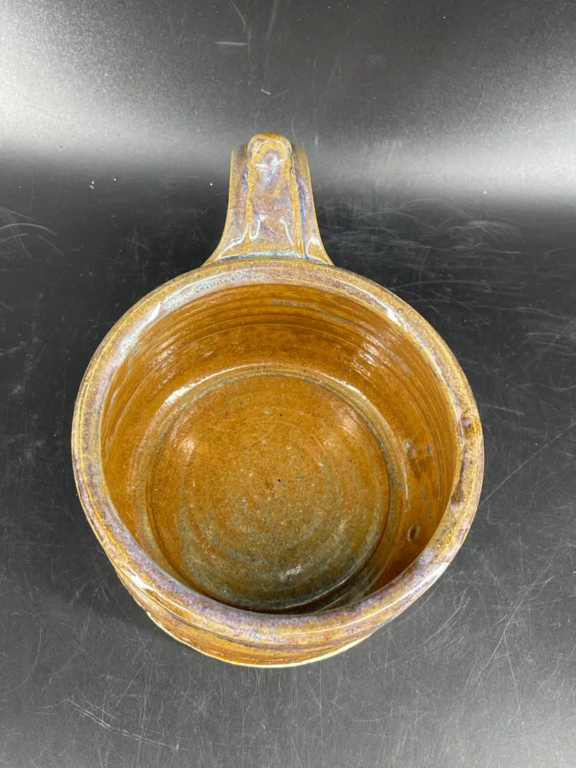 Measures 3” tall and 4.25” diameter No chips or cracks. Glazed on the inside.