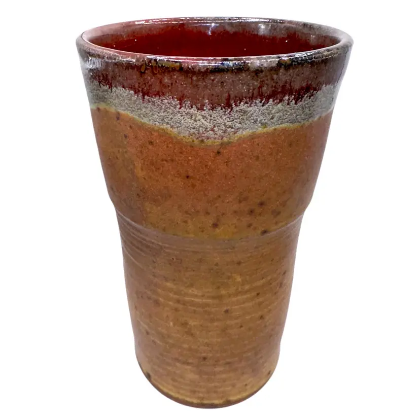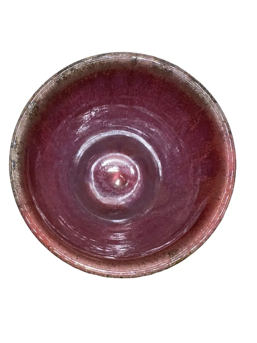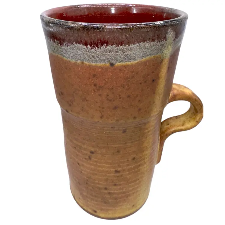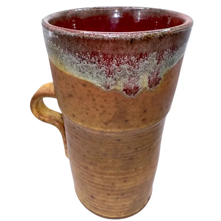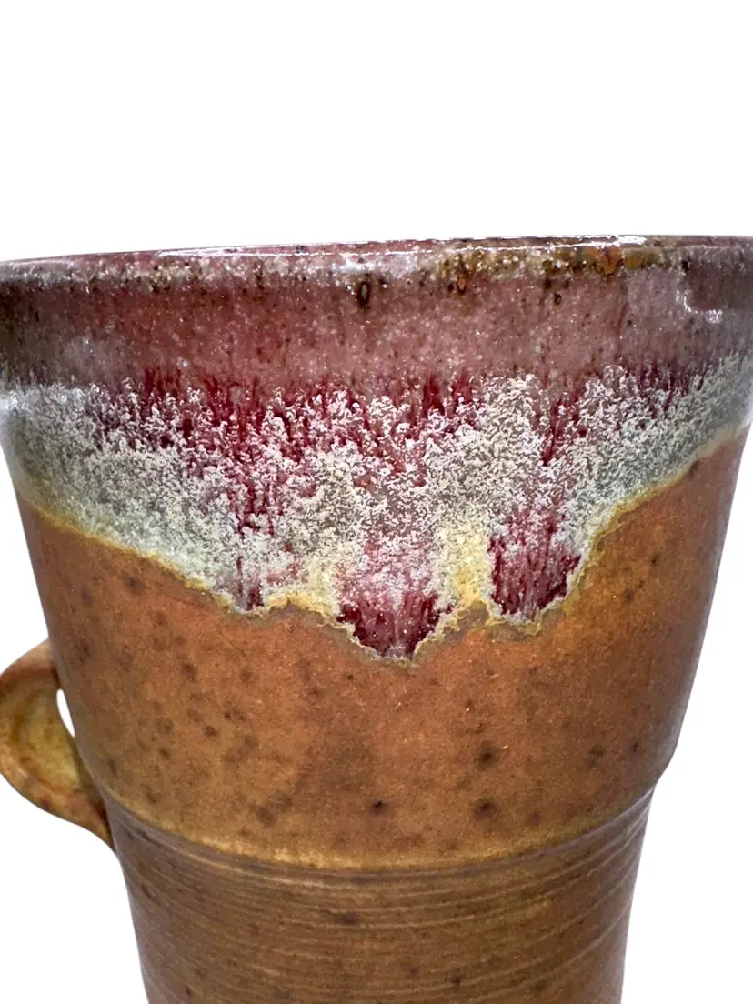 Very large studio pottery mug with berry colored drip glaze around the rim and inside of mug. Measures 5.85” tall and has a 4” diameter! Holds ALOT of coffee! No chips or cracks.