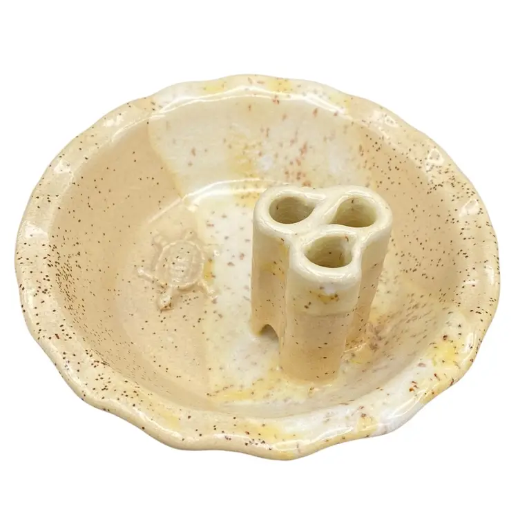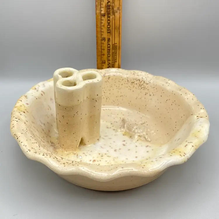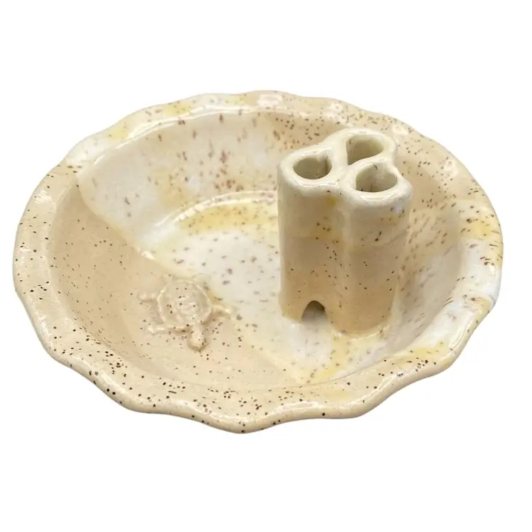 Studio Pottery Vintage Flower Frog Boho Turtle Signed Retro Organic Style Natural