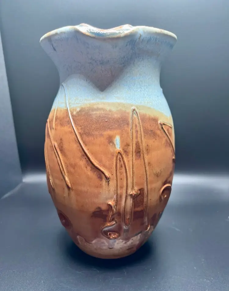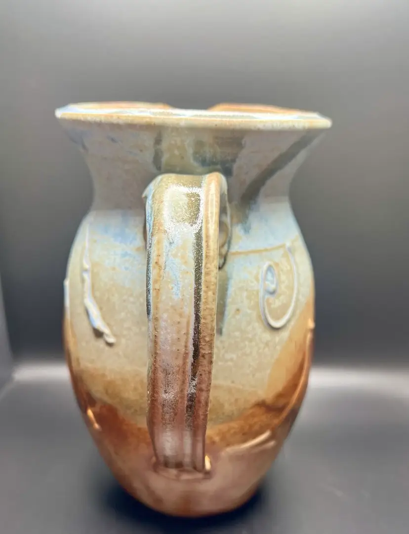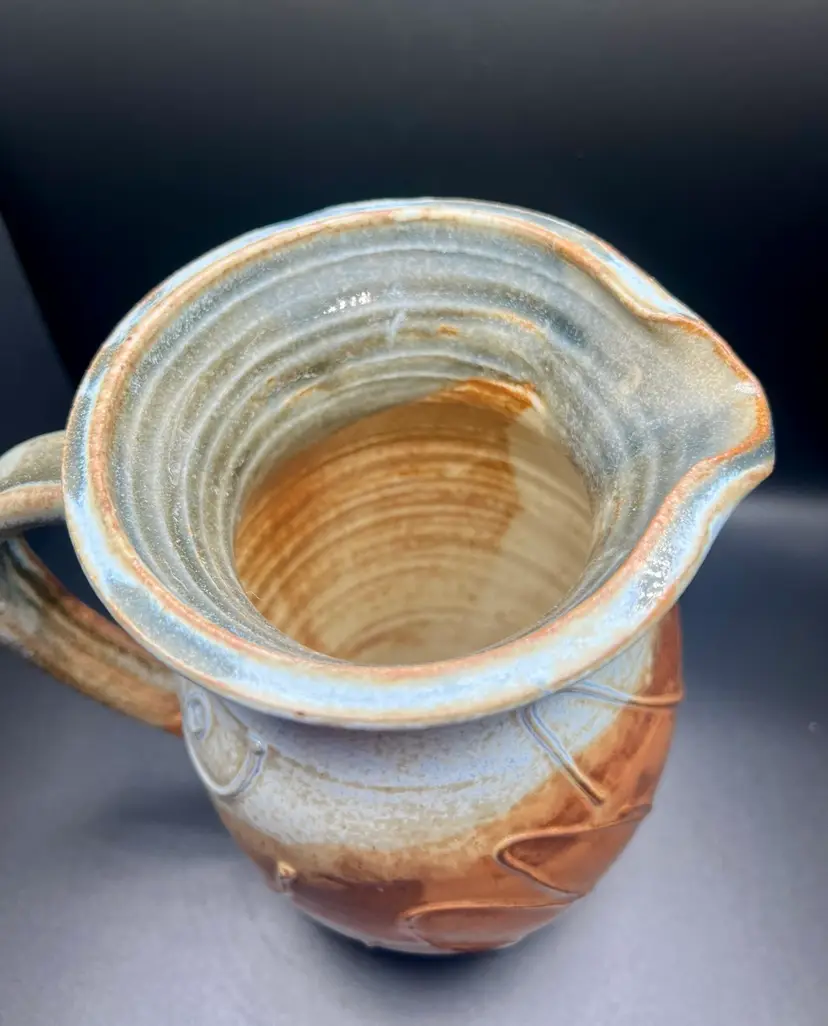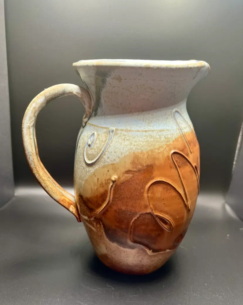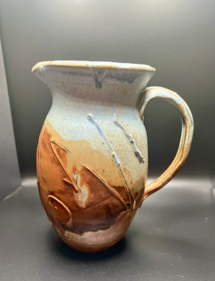 Stunning pitcher with beautiful finish. Artist signed on bottom. Excellent condition; no chips, cracks, or repairs.