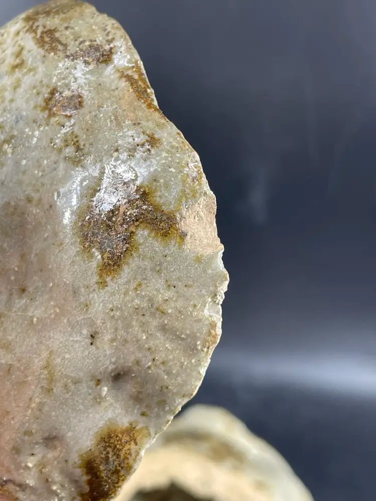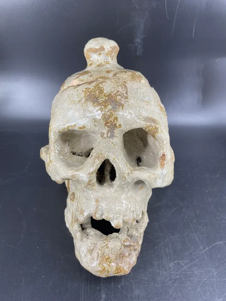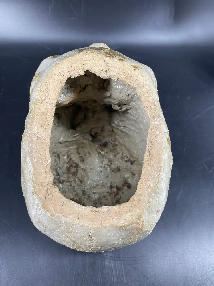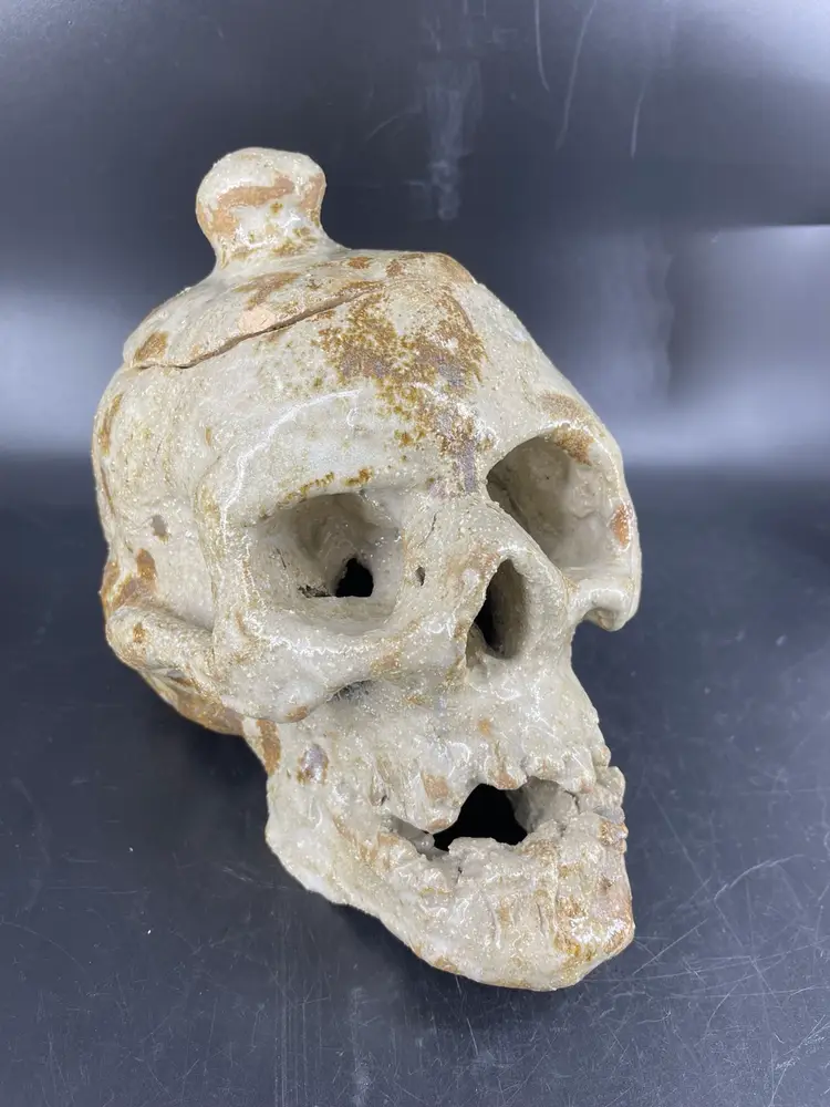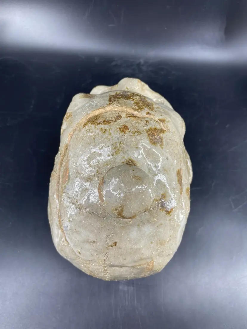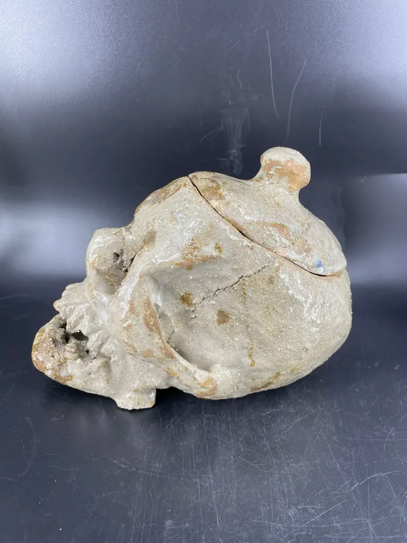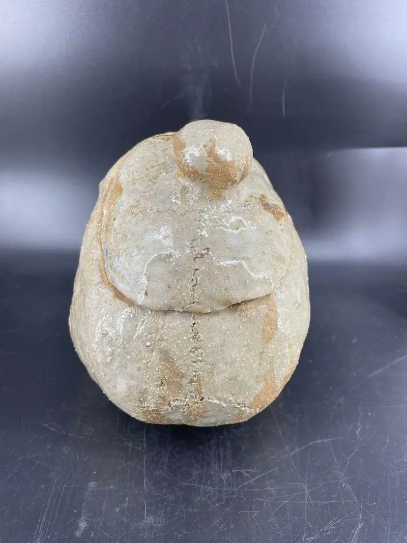 Measures 6.5” tall and 9” long The lid has chipping at the edges shown in the photos.