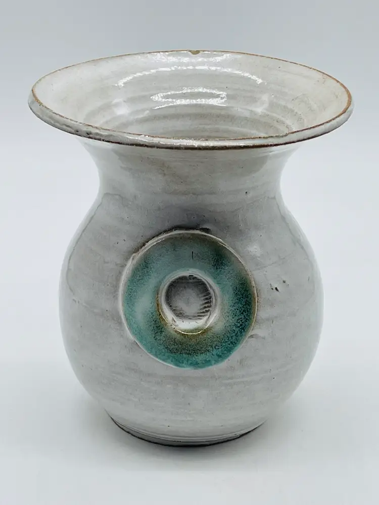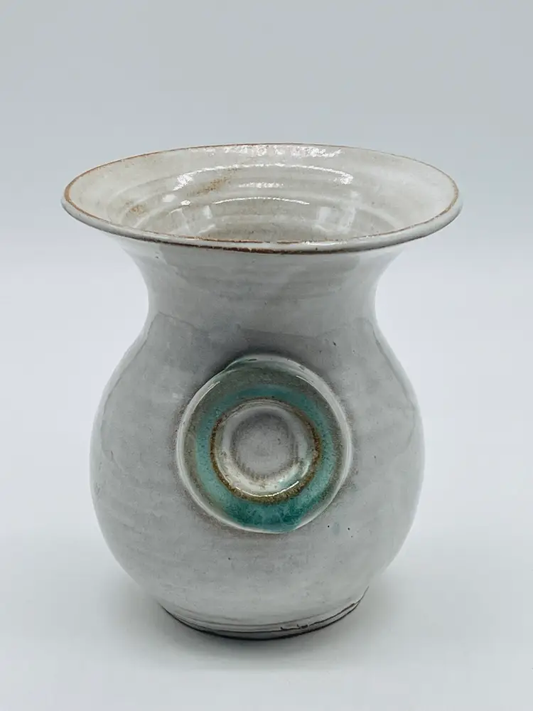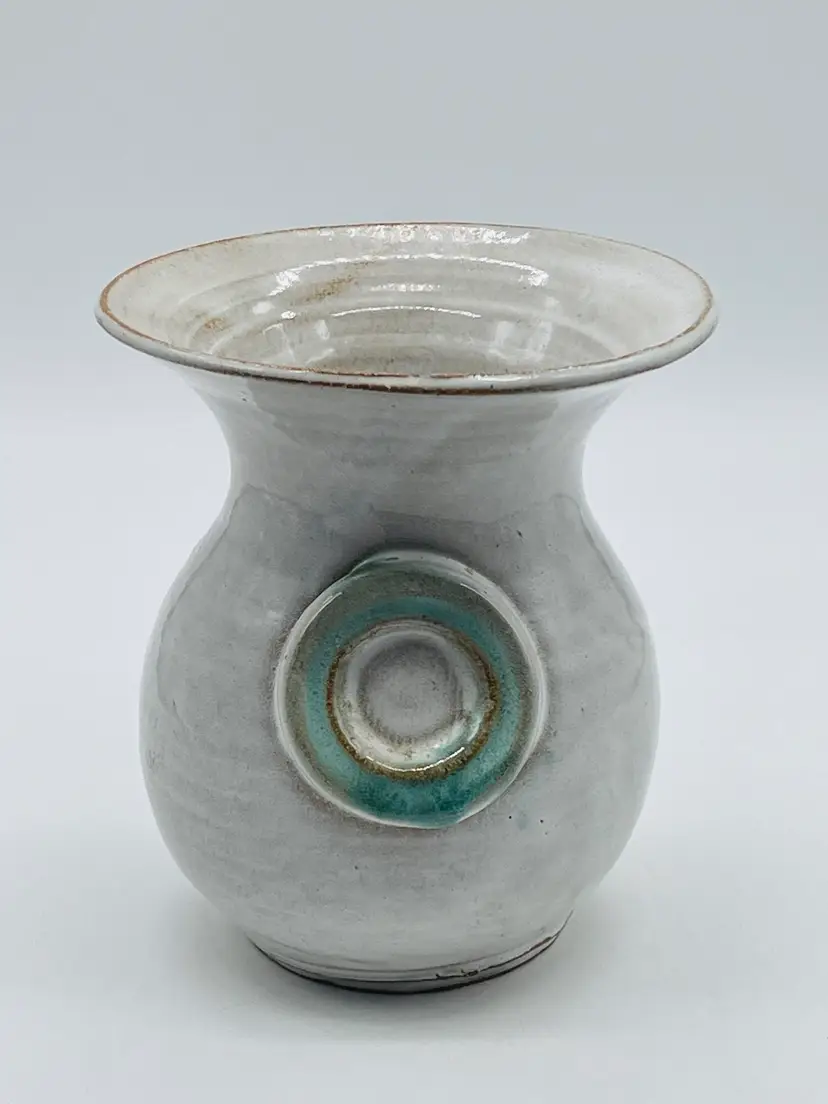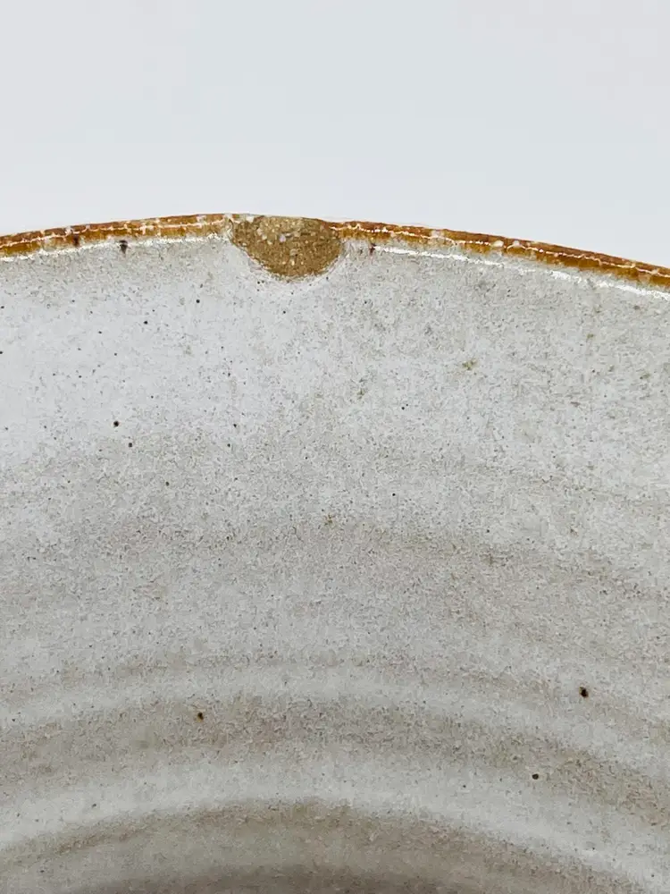 Measures 6.5” tall, 5.5” wide Small chip on rim