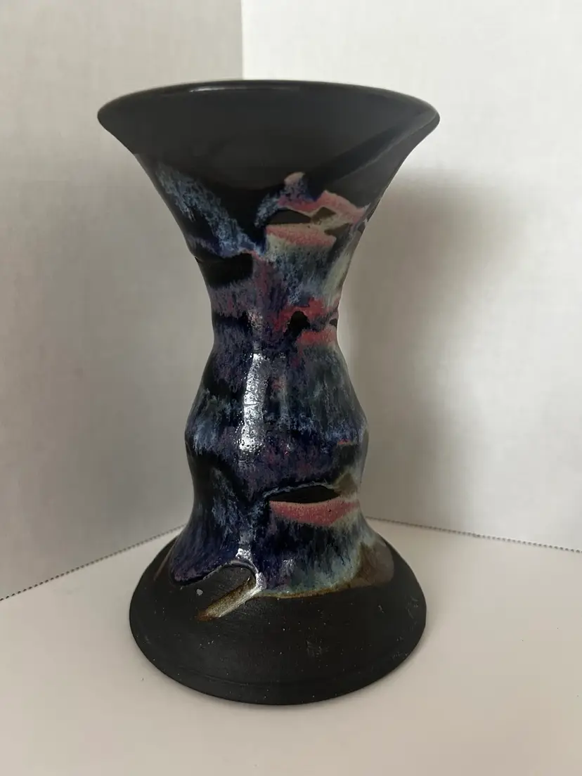 6.5 inches tall. Signed by Thor McNeil. Exposed raku clay and drip glaze. No chips no cracks