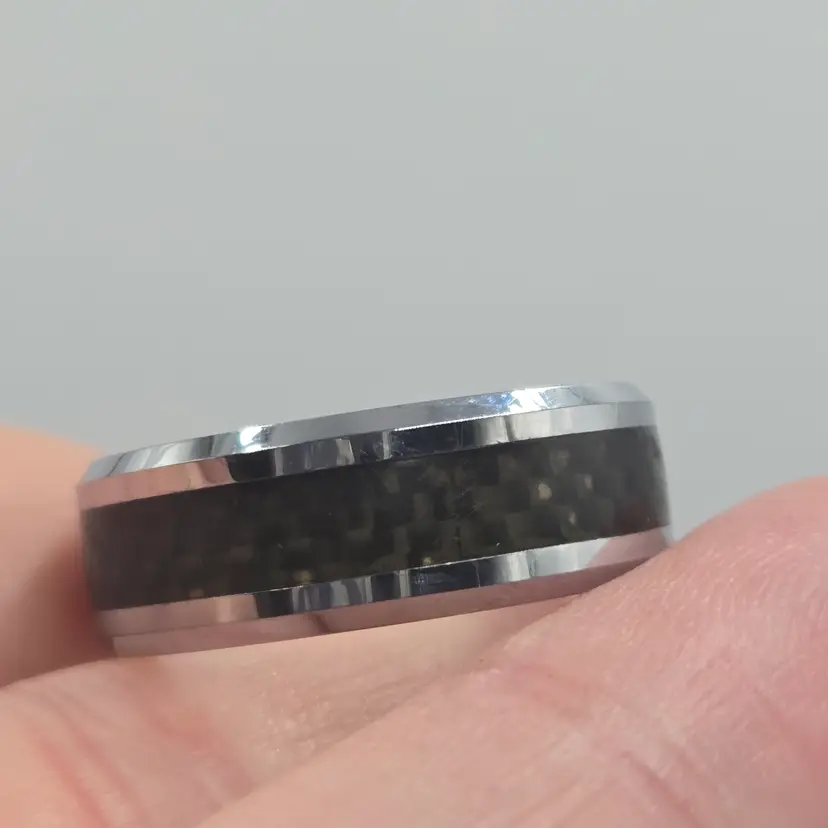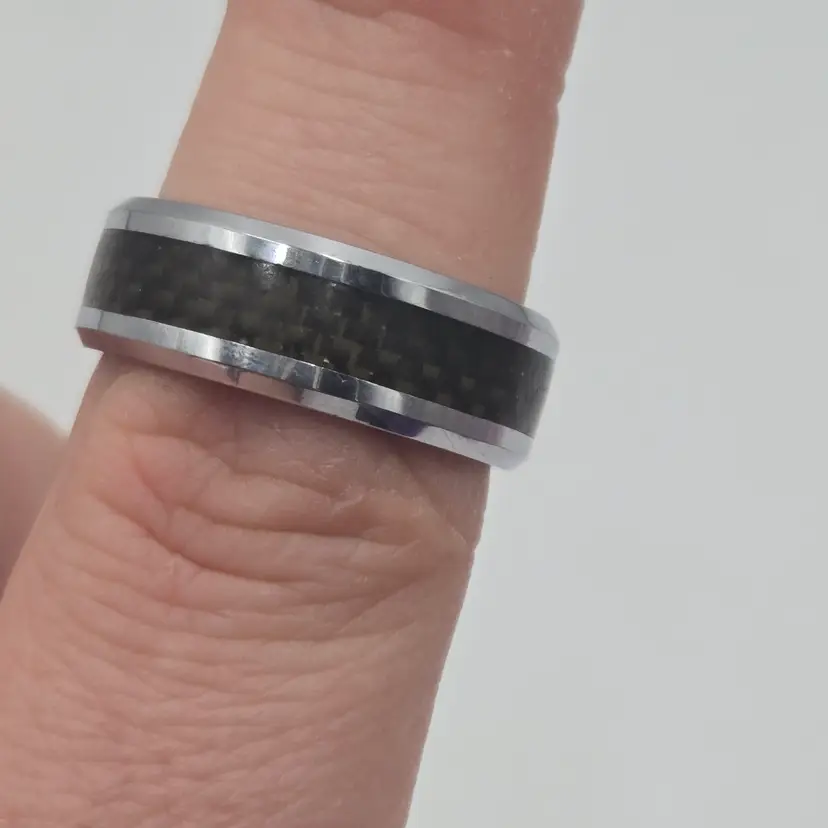 Stuller Men's Wedding Band White Tungsten Carbide Carbon Fiber Inlay Size 10