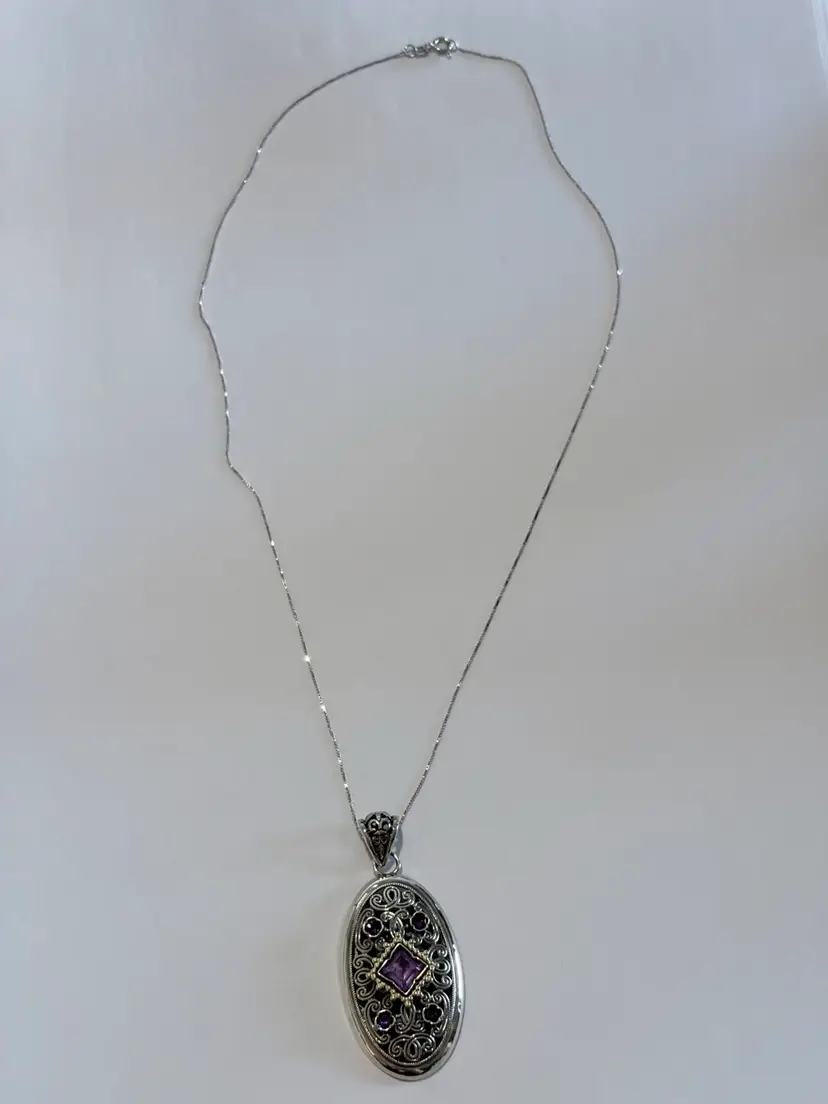 Stunning 14kt gold & Sterling Silver Amethyst Pendant 2” on a 14kt Gold 17” Chain