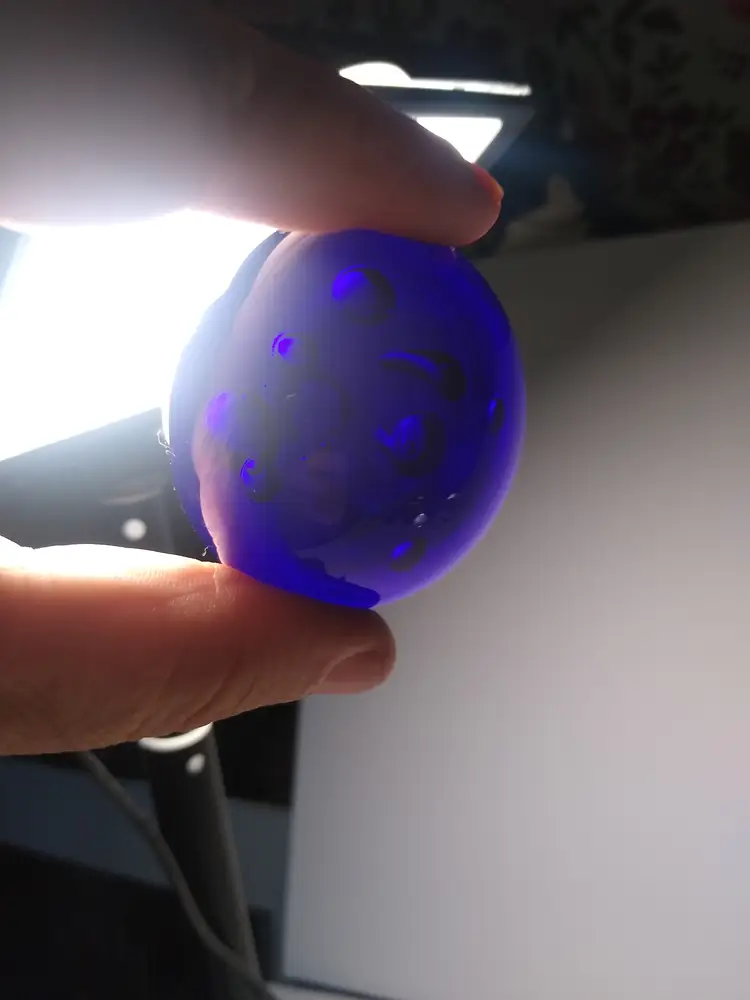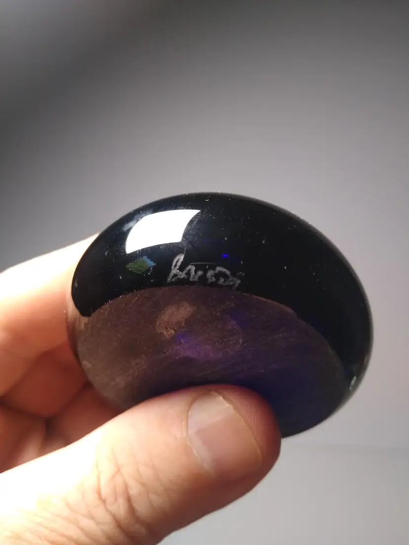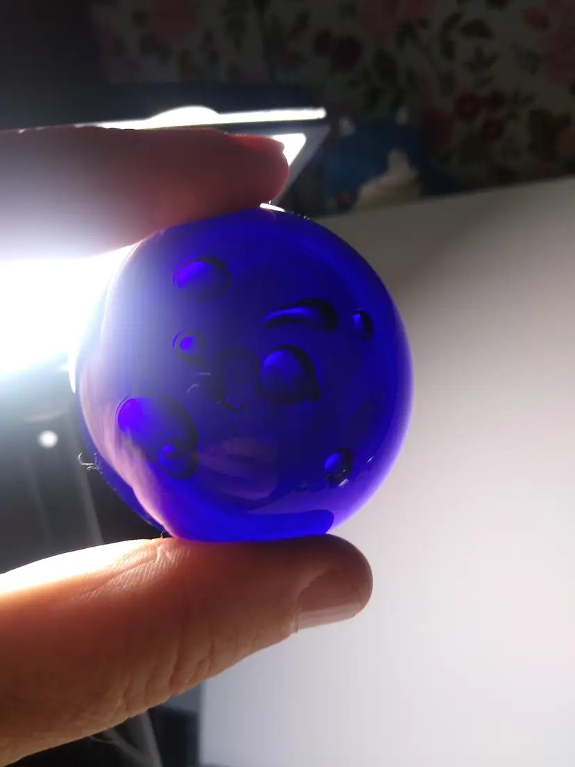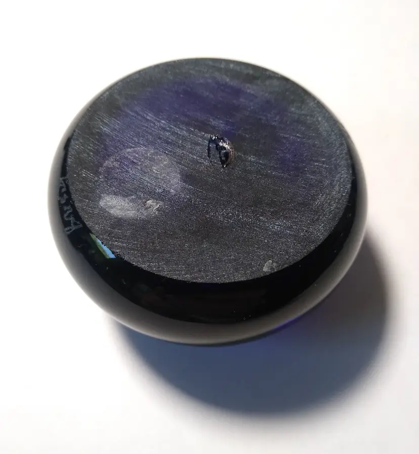 This Bristol Blue Glass Paperweight measures approx 2.25 inches across at its widest point and just over an inch high.