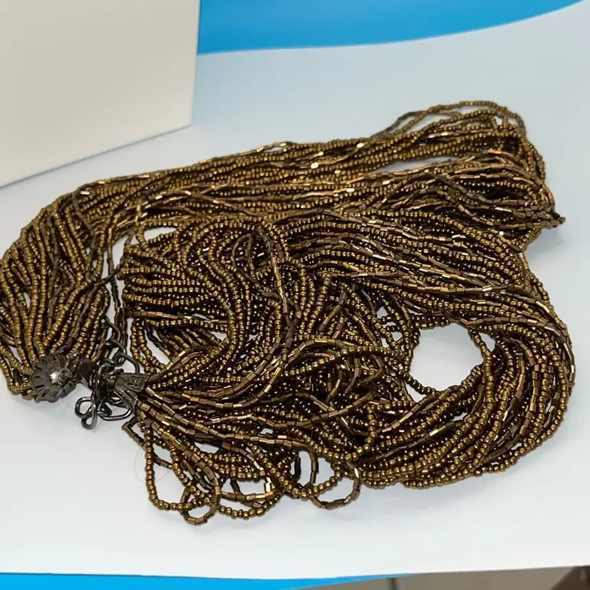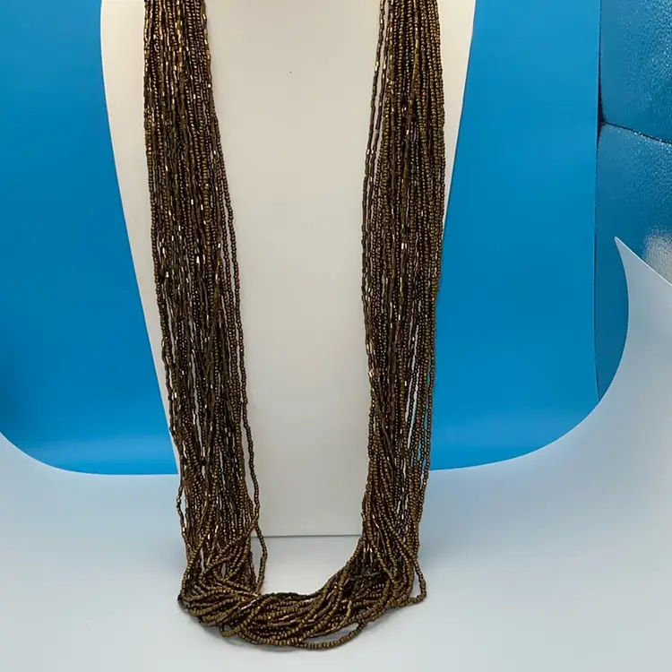 Stunning Bronze Bead Necklace 30 Strand 36” Long