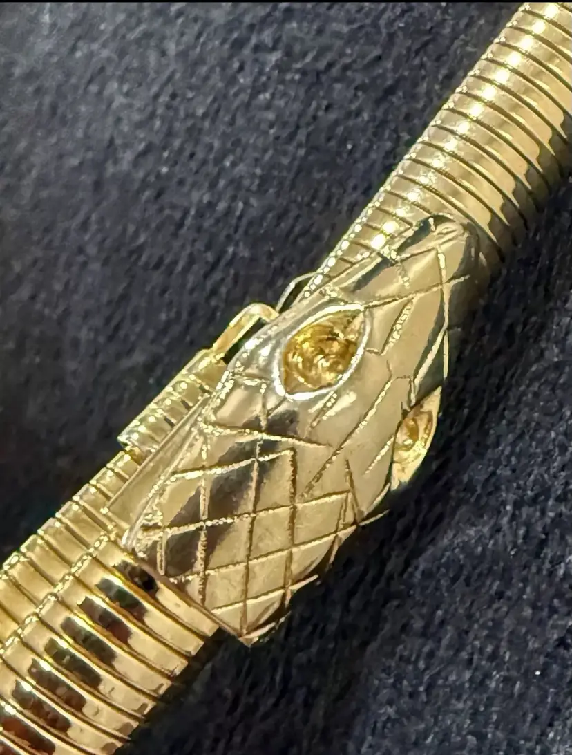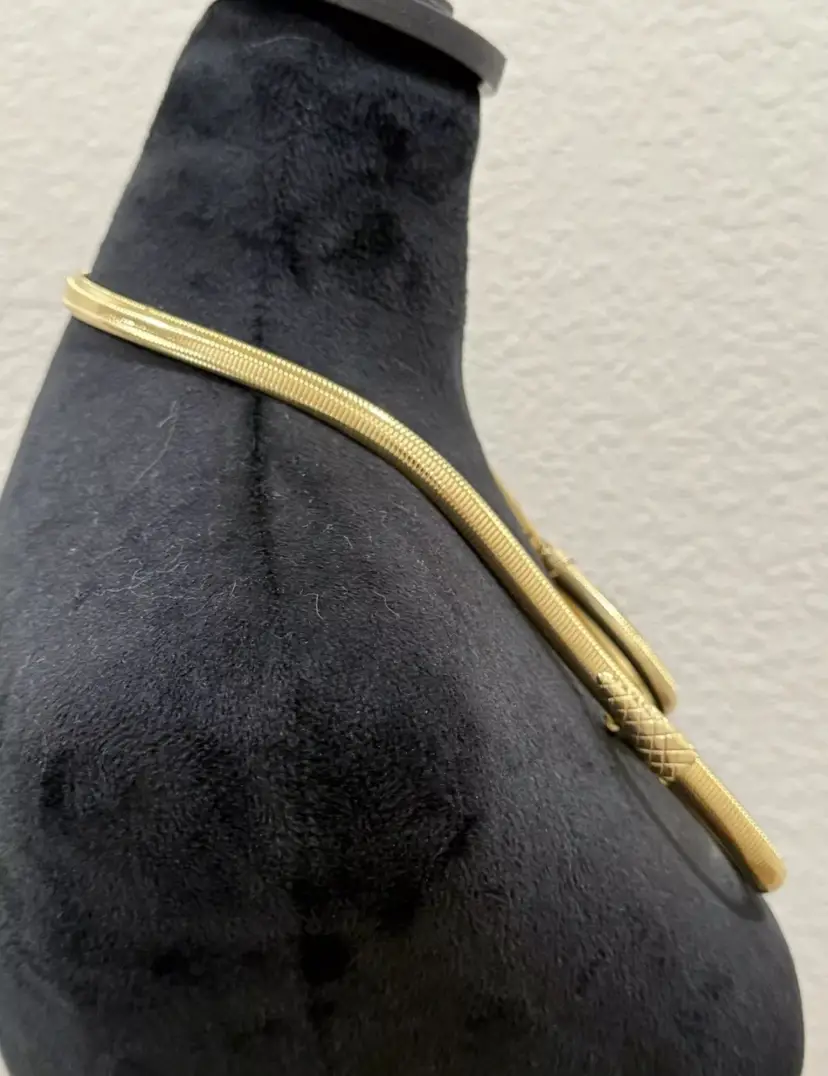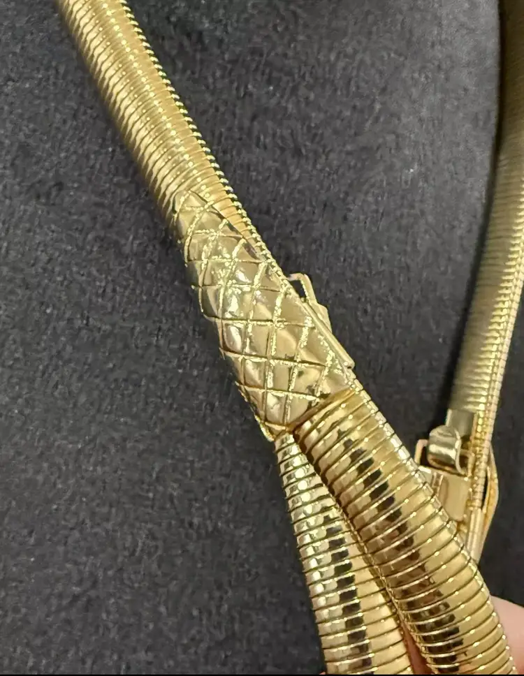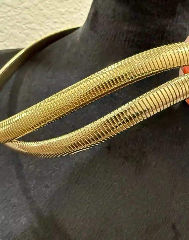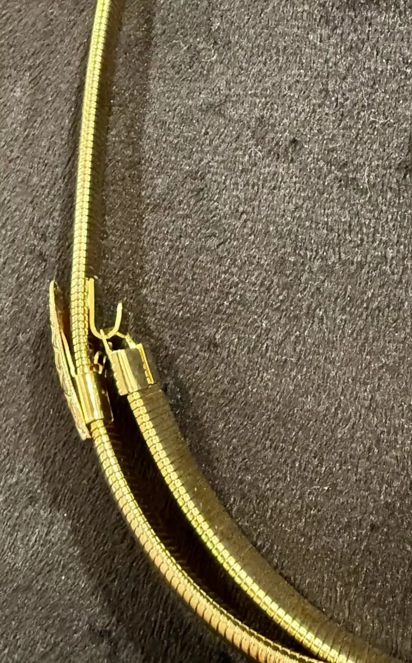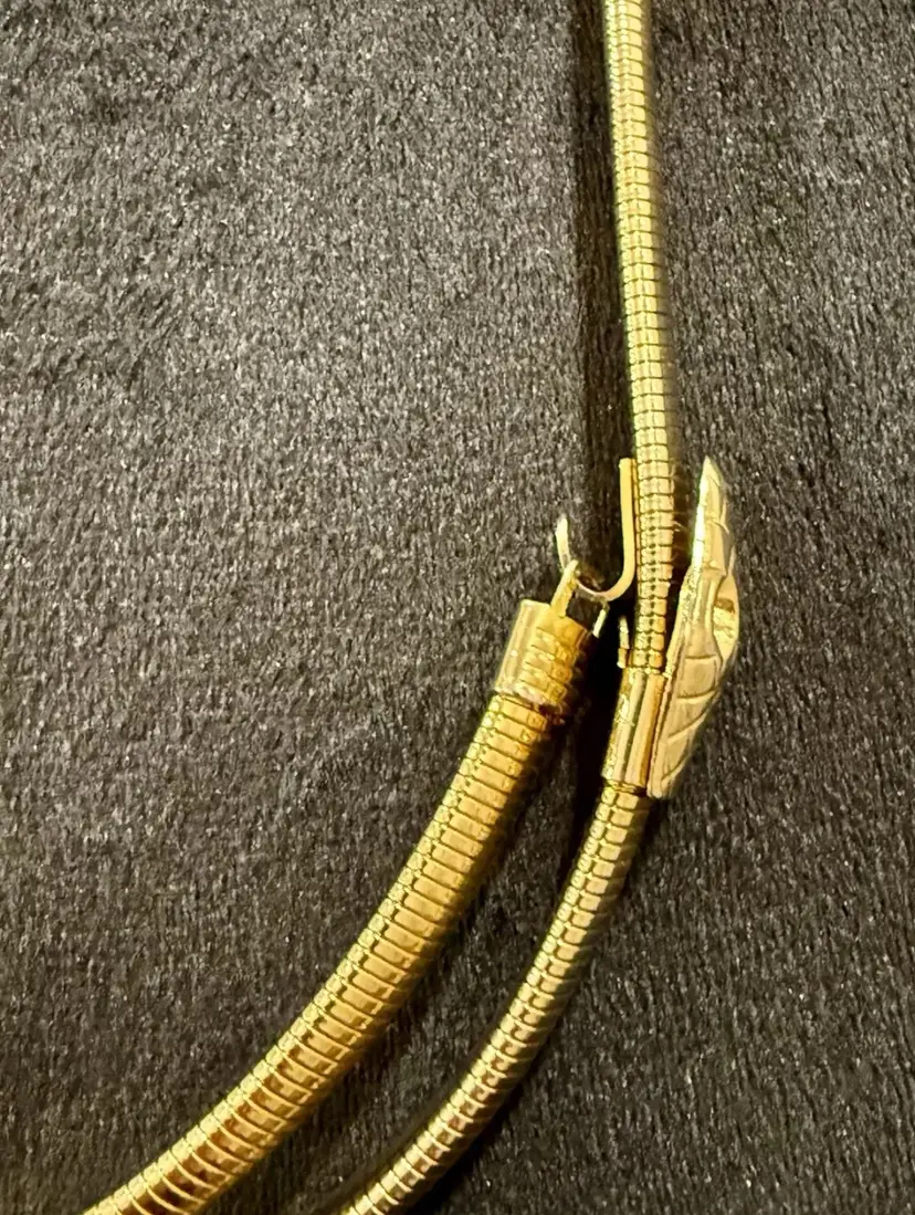 Stunning Double Clasp Omega Chain Necklace- Snake Head And Tail Gold