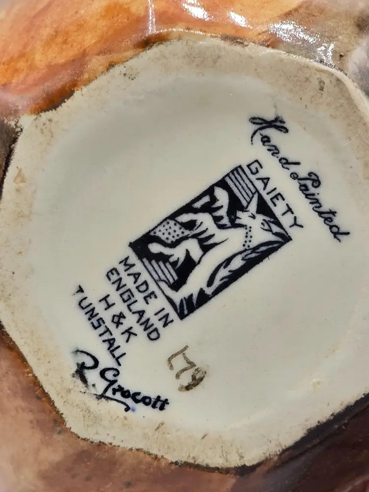 Sweet, True Vintage, H&K Tunstall Pottery Mini Pitcher. Handpainted with beautiful florals and signed by R. Grocott. R. Grocott was the decorating manager 1933-1942 This is beautiful addition to any collector or would be stunning as a decorative item. It's in near perfect condition. Please reference photos for condition and reach out with additional questions.