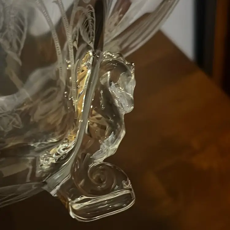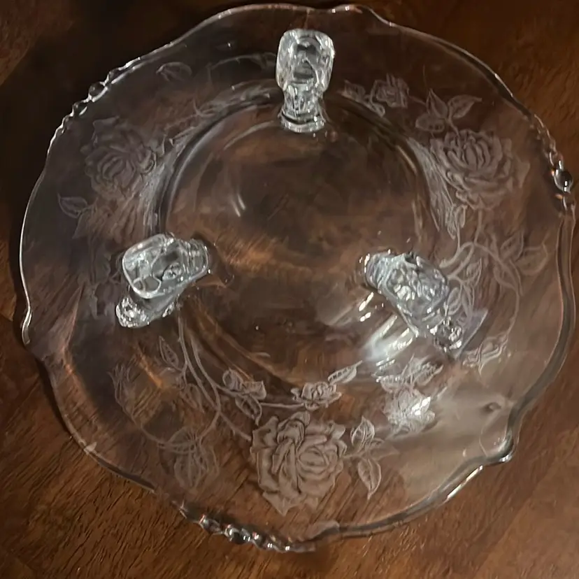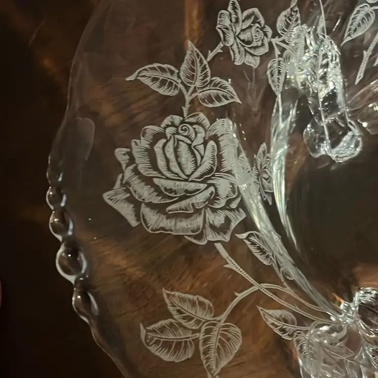 The "Rose Etch" pattern, introduced in 1949, is one of Heisey's most popular and recognizable etched designs. It features delicate roses intertwined with leaves, creating a romantic and classic look. This pattern was applied to a wide array of tableware and serving pieces, making it a versatile and desirable addition to any collection.