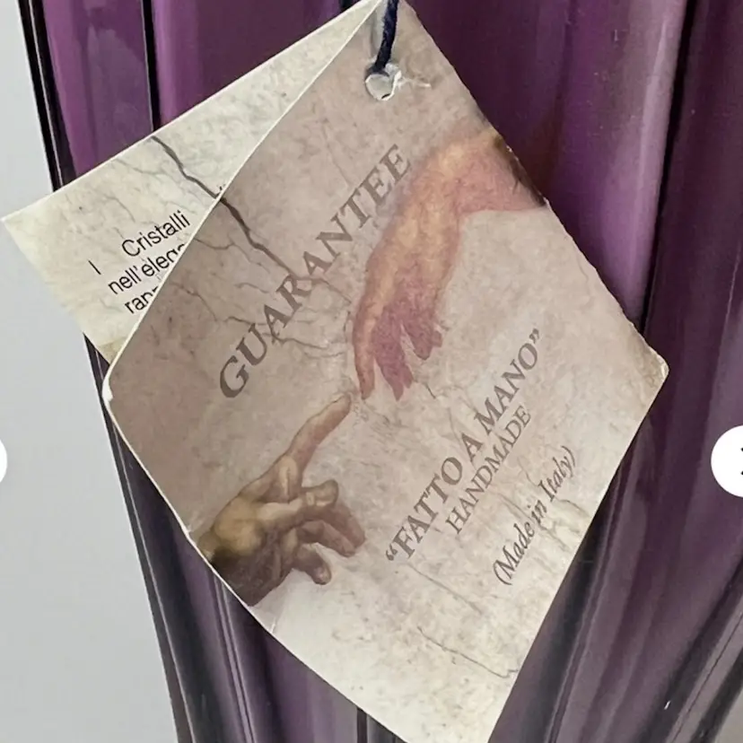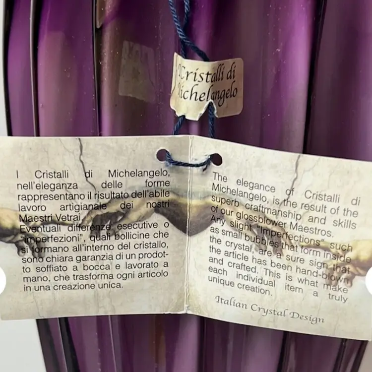 Stunning and impressive. It is a very large piece. 16” tall with an approximately 6” diameter base. A statement piece. Can be used as a votive candle holder or a planter. A show stopper. The last two photos are for reference. To show what the tags looked like when attached. The vase no longer has tags.